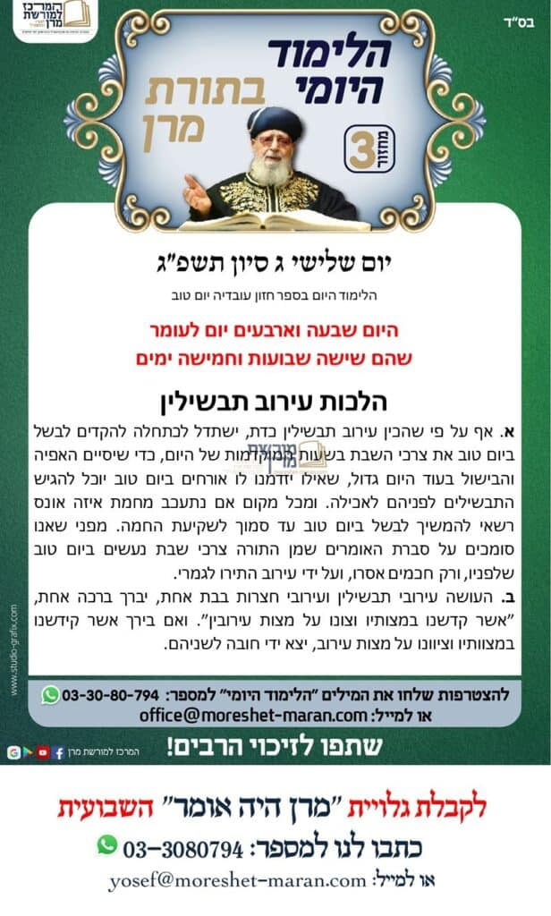 הלימוד היומי בתורת מרן | יום חמישי כ"ז באייר ה'תשפ"ג