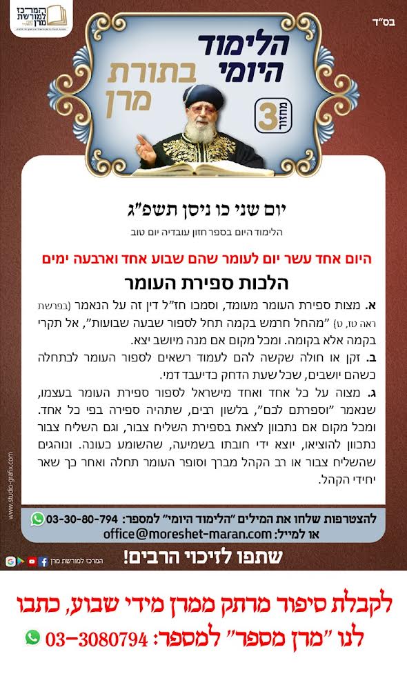 הלימוד היומי בתורת מרן | יום שני י"ט בניסן ה'תשפ"ג