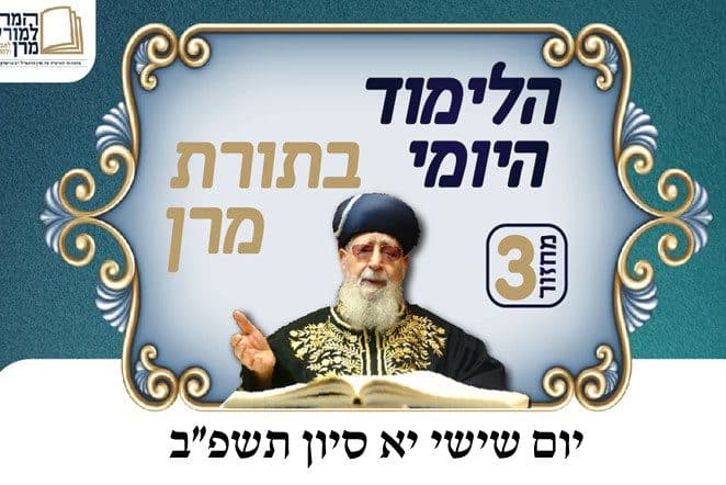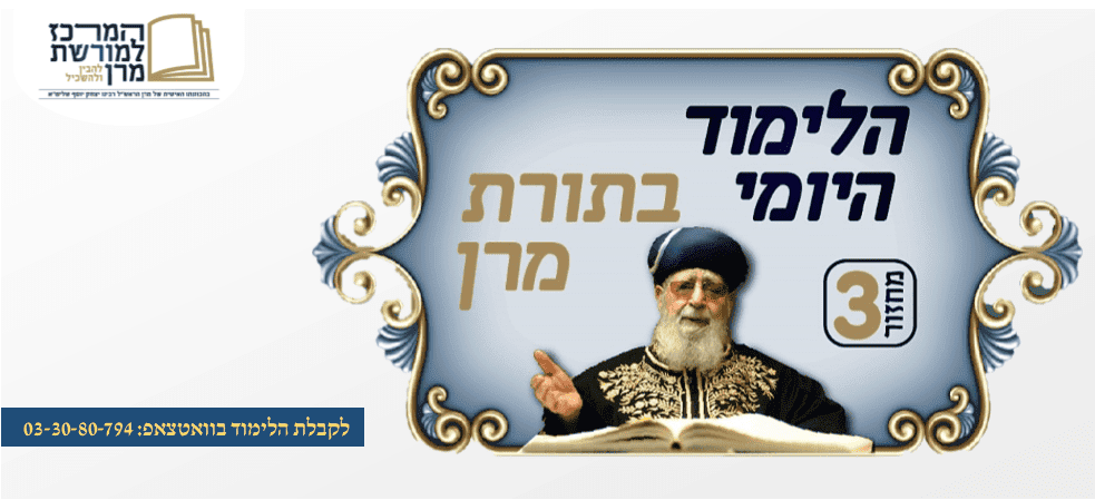 הלימוד היומי בתורת מרן | יום השישי י"א בסיון תשפ"ב
