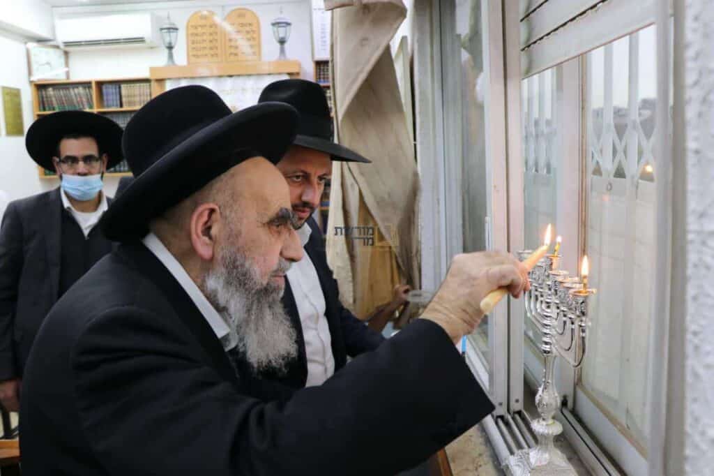מורנו ראש ישיבת פורת יוסף חכם משה צדקה בהדלקת נרות חנוכה