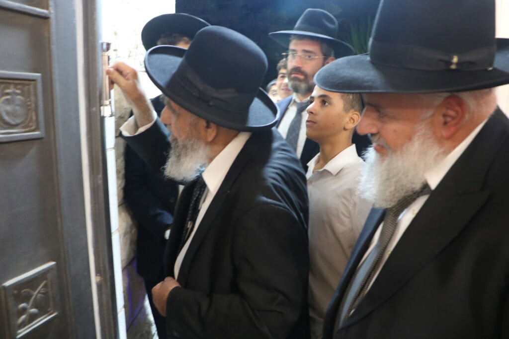 הרב משה צדקה שליט"א בקביעת מזוזה בישיבה החדשה לצעירים 'באר יוסף'
