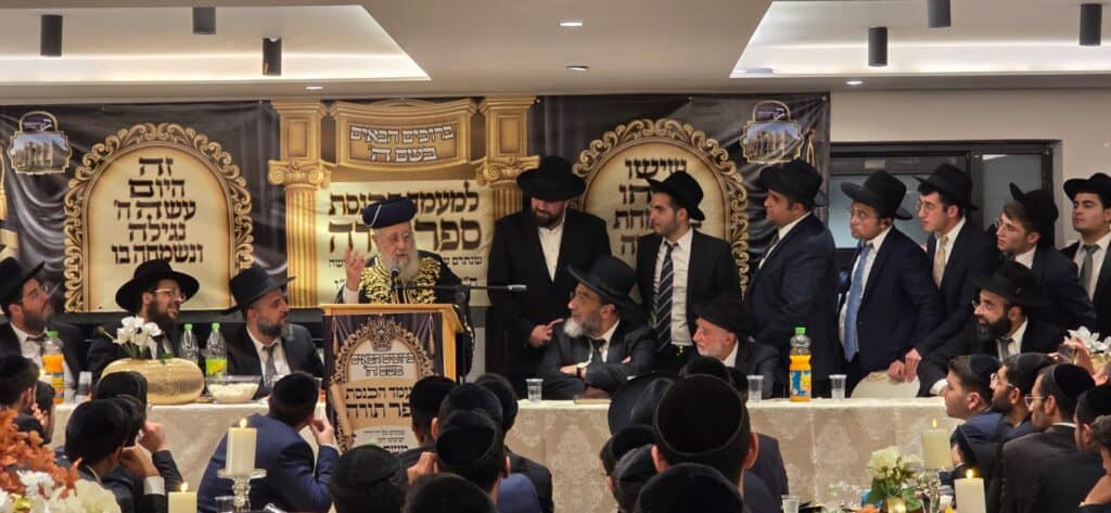 שישו ושימחו בשמחת תורה: מנהיג הדור מרן הראש"ל בהכנסת ספר תורה לישיבת באר יצחק בטלזסטון • גלריה