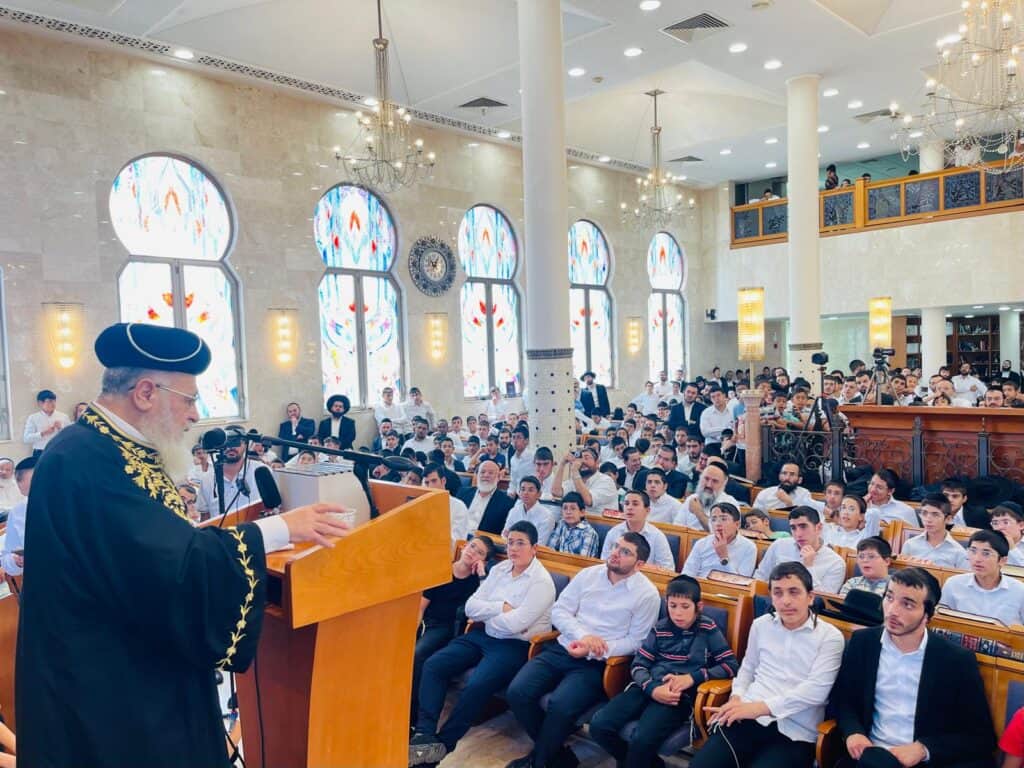 "ניצלנו ממוות בזכות מרן": מנהיג הדור מרן הראש"ל בכנס הודיה להשי"ת בעיר בבית הכנסת הרשב"י