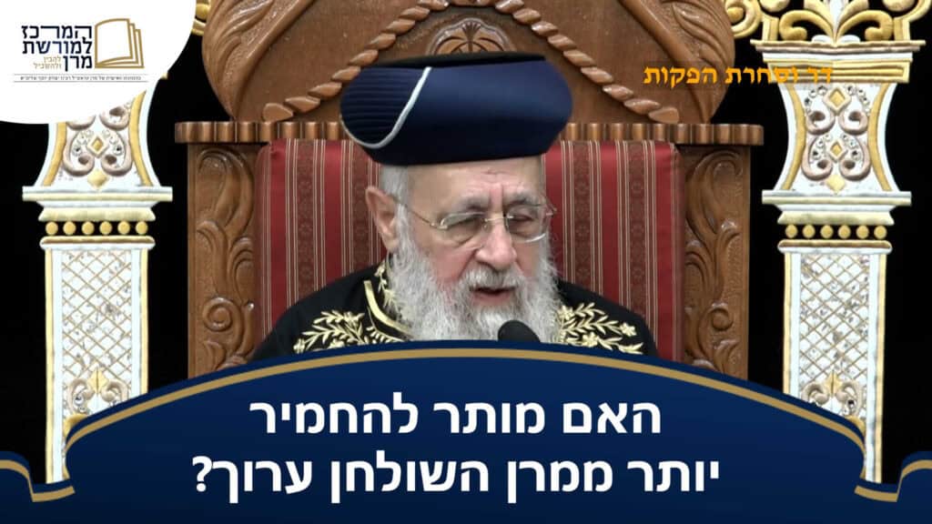 האם מותר להחמיר יותר ממרן השולחן ערוך? – מרן הראש"ל הרב יצחק יוסף שליט"א