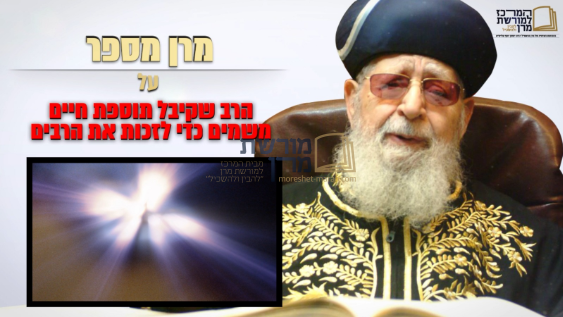 מרן מספר: הרב שקיבל תוספת חיים כדי לזכות את הרבים