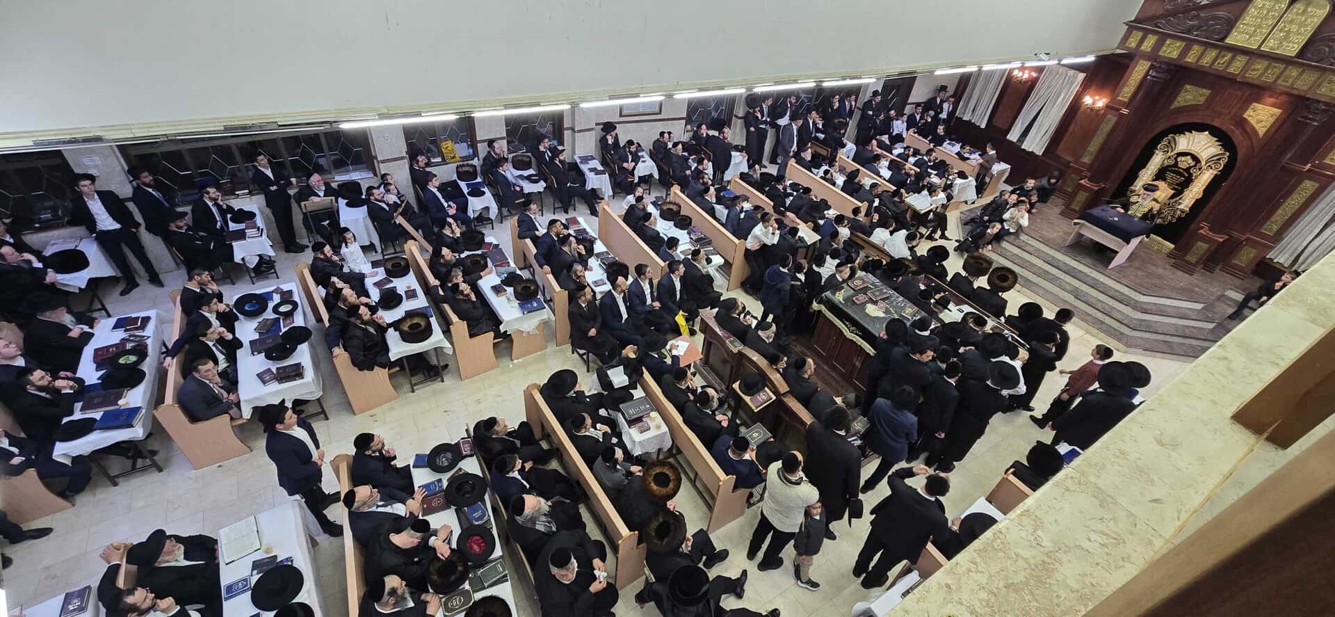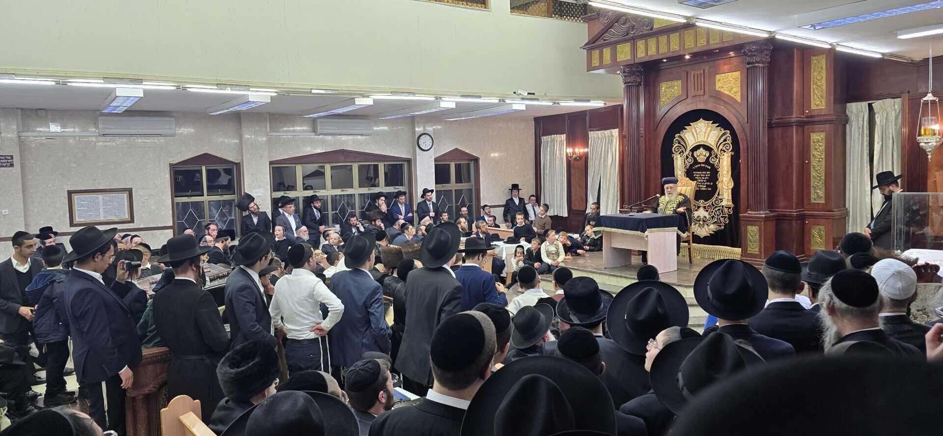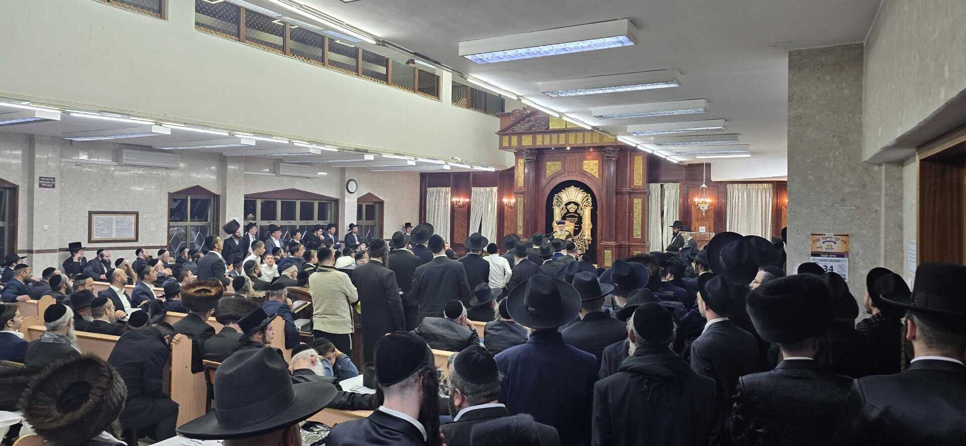 בית המדרש היה מלא עד אפס מקום. מאות מתושבי השכונה, אברכים, בחורי ישיבה ועמך בית ישראל, התקבצו ובאו לשמוע את שיעורו של מרן שליט״א, במסגרת שיעורי התורה בחול המועד, בהשתתפות כ״ק האדמו"ר מאונגוואר שליט״א, אשר ישב סמוך למרן רבנו שליט"א והאזין ברוב קשב לדבריו הנשגבים.