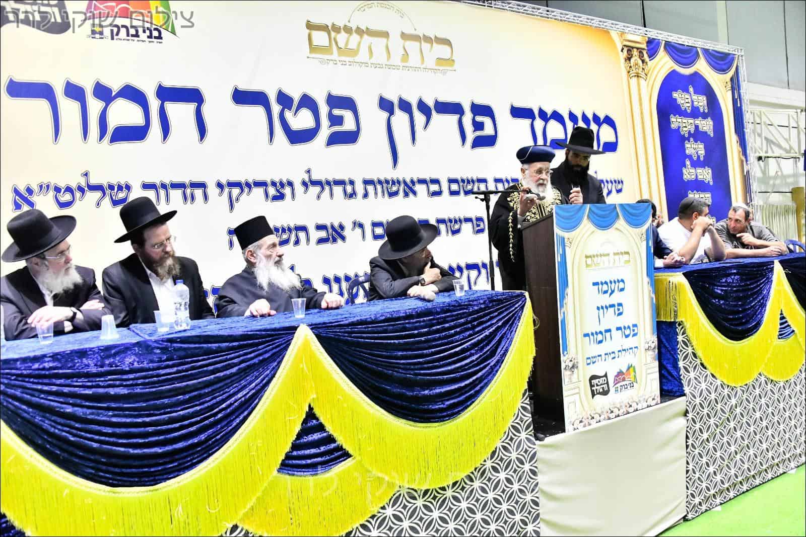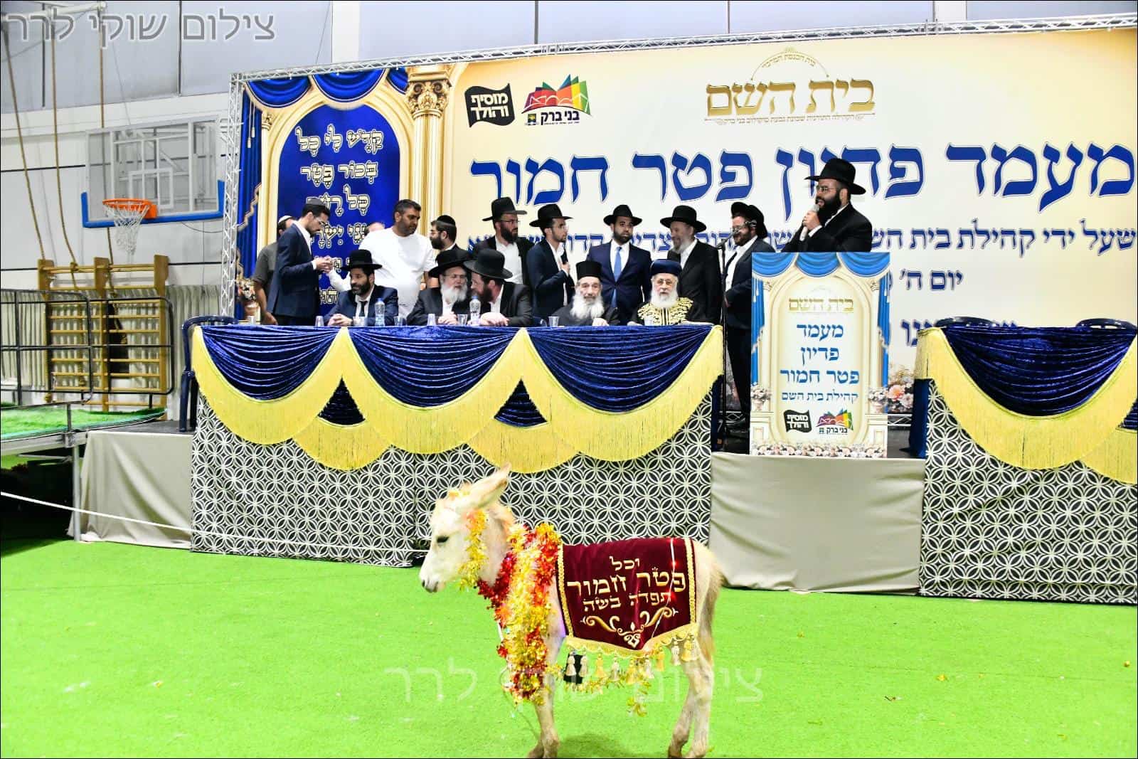 אמש (יום חמישי) נערך באולמי משואות בבני ברק מעמד נדיר ומורמם של מצוות פדיון פטר חמור ביוזמת קהילת ‘בית השם’, בהשתתפות רבני בני הקהילה ותושבי העיר, על ידי מרן מנהיג הדור הראשון לציון הגאון רבינו יצחק יוסף שליט״א והגה”צ חכם ניסים בן שמעון שהכהן הפודה הוא הגרא"י הכהן קוק שליט"א ראש ישיבת 'מאור התלמוד'.
