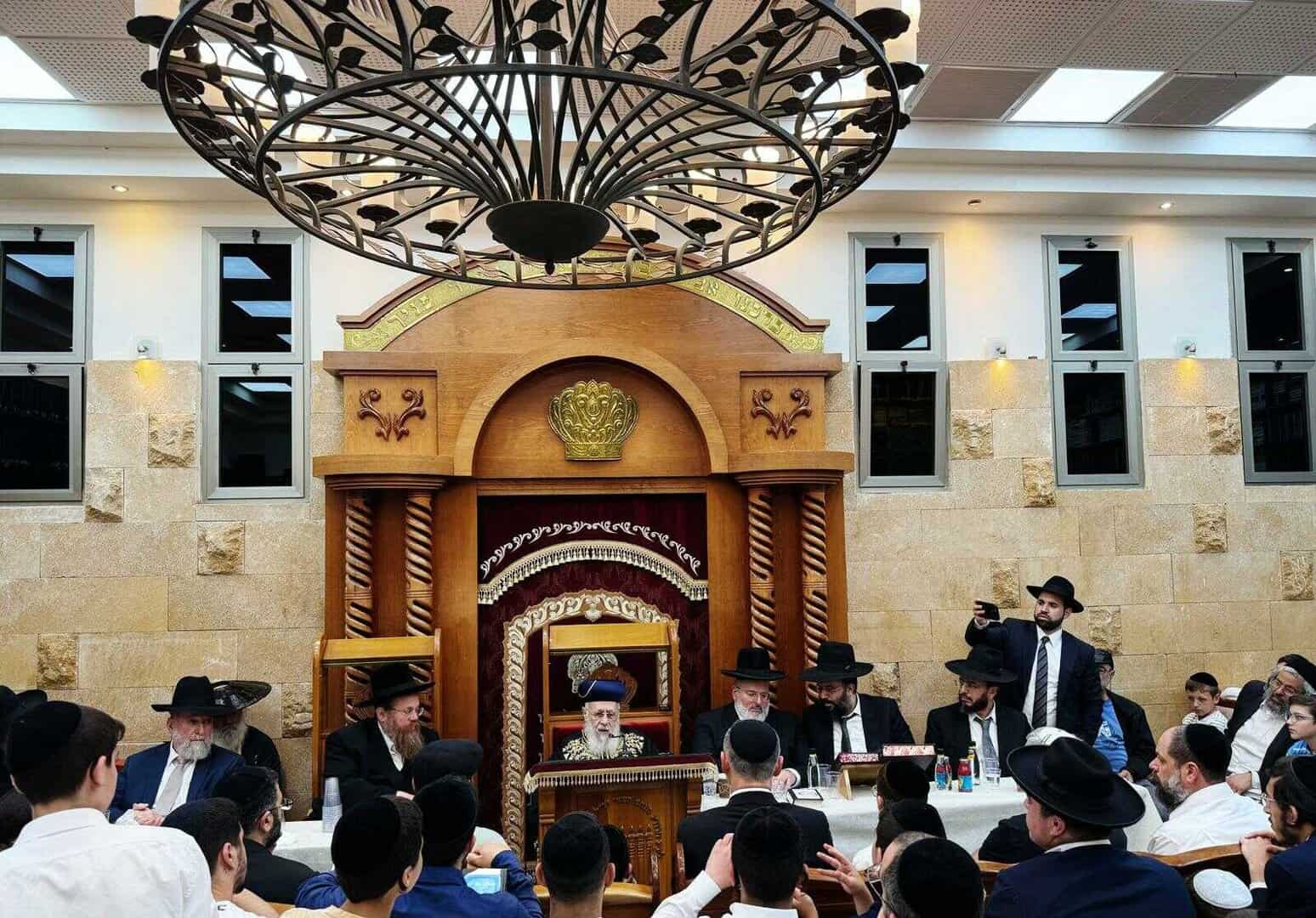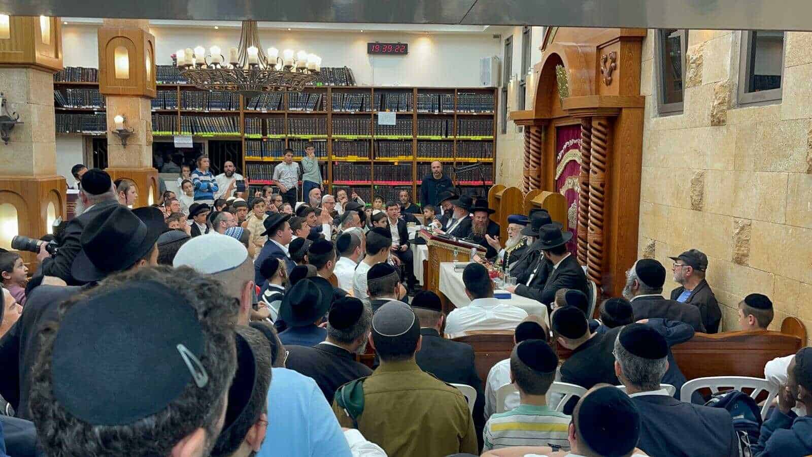 בסיום השיעור, שנמשך קרוב לשעה, קם הקהל על רגליו בהתרגשות עצומה, בשירת 'ימים על ימי מלך' שנישאה בעוצמה מכל עבר. לאחר מכן, ליוו מאות המשתתפים את מרן רבנו שליט"א בצאתו מבית המדרש, כשפניהם מאירות וזמרת הוד בפיהם, מתוך תחושת הודיה עמוקה על הזכות הנדירה.
