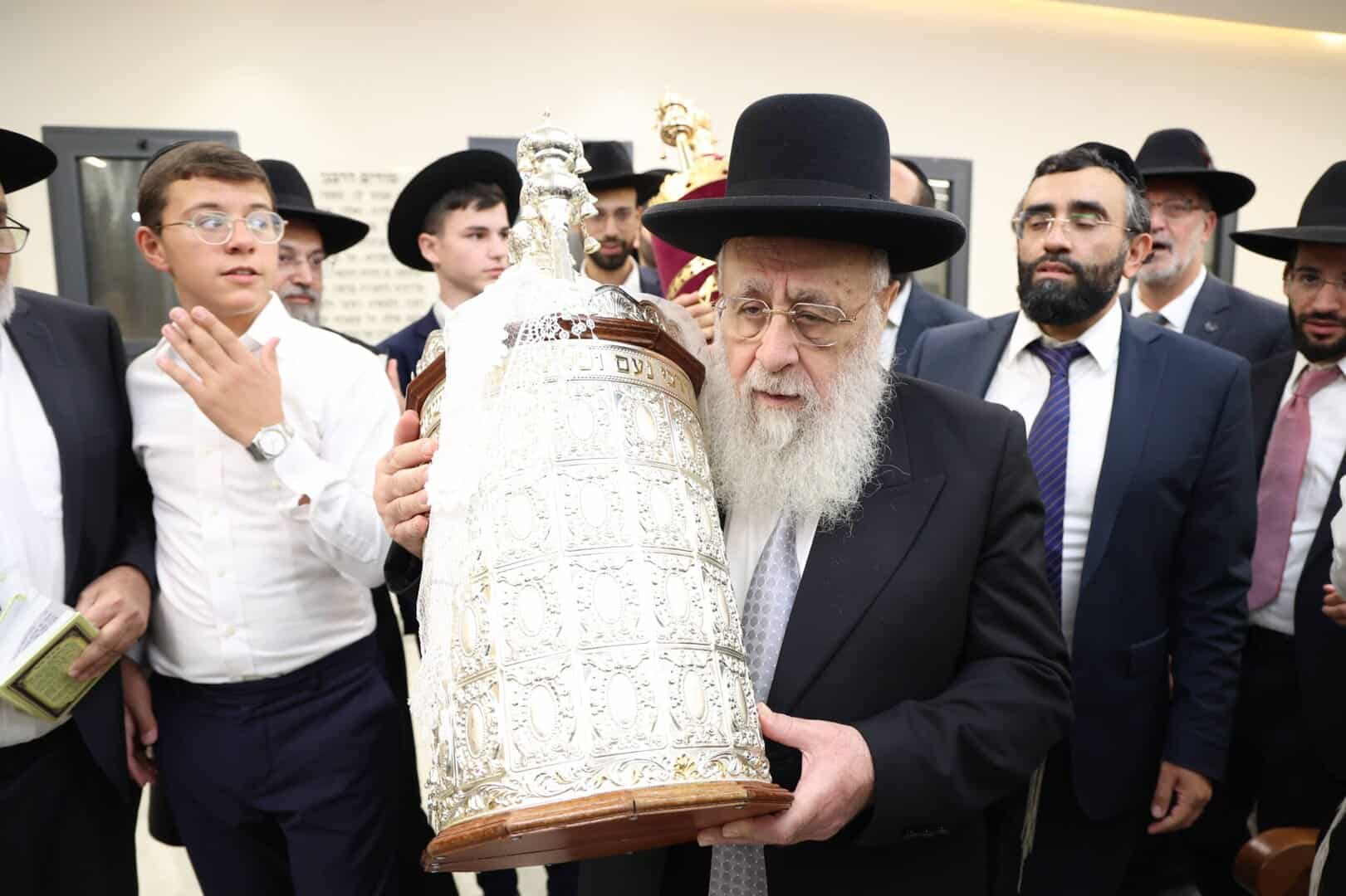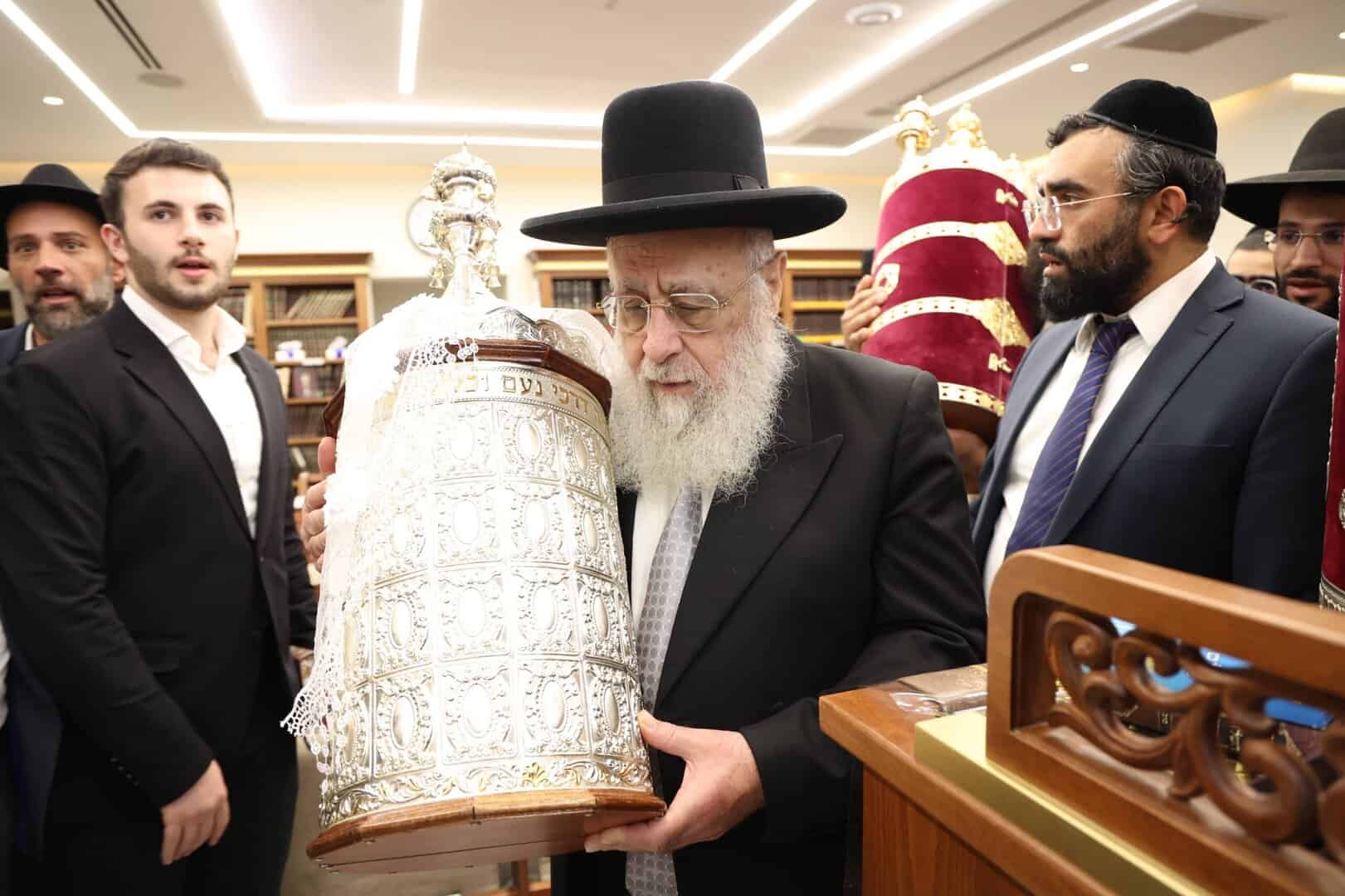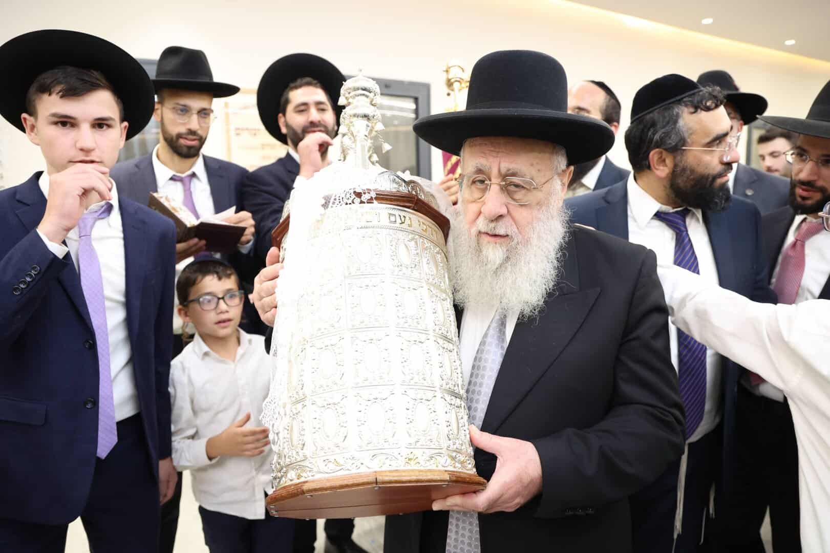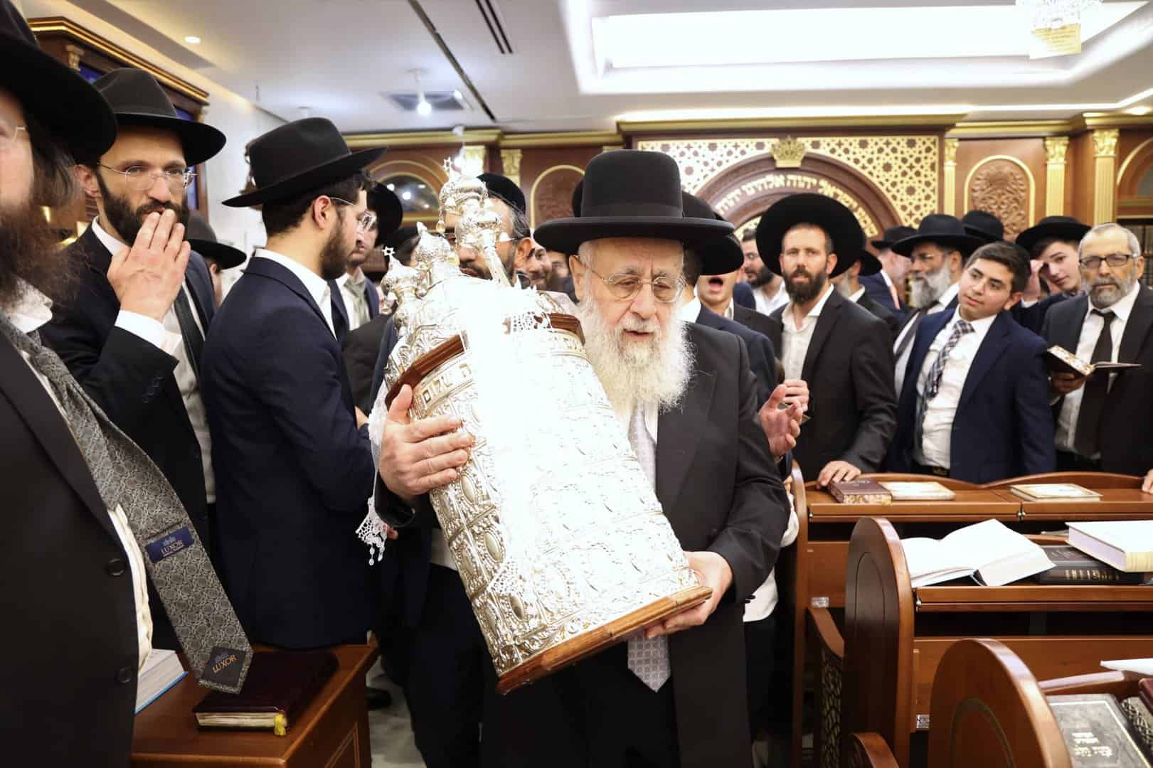 לאחר התפילות וההקפות המרוממות שנערכו בבית מדרשו ׳אור חביב׳,יצא מנהיג הדור מרן הראשון לציון רבנו יצחק יוסף שליט״א להשתתף בהקפות של תפילת מנחה בשמחה של מצווה.