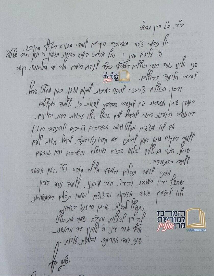 'המרכז למורשת מרן' מגיש את המכתב המלא: