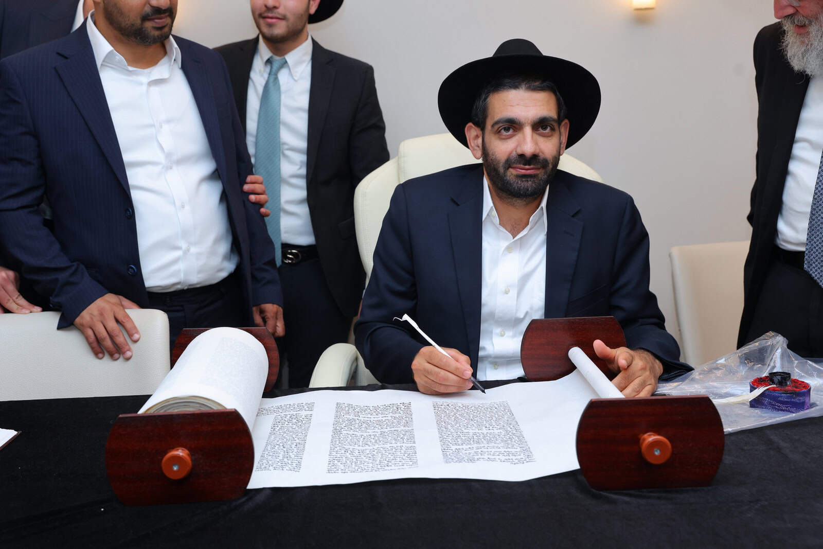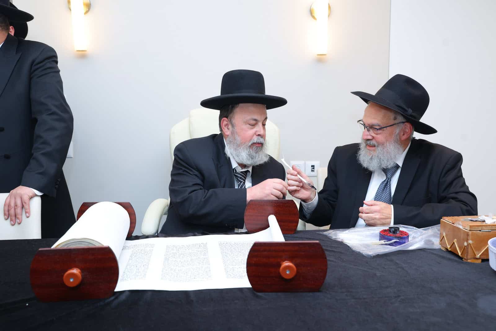 קודם המעמד נכנסו הרבנים לגדולי התורה ובראשם מנהיג הדור מרן הראשון לציון רבנו יצחק יוסף שליט"א ע"מ שיכתבו אות בספר התורה.