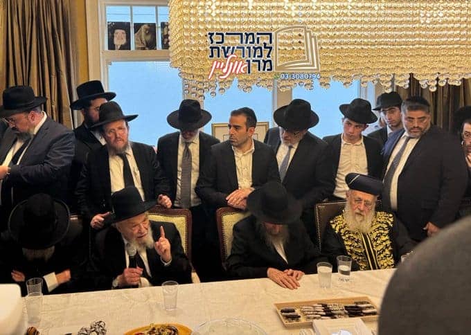 מרן מנהיג הדור שליט"א במעמד פתיחת קרן הצלת עולם התורה בברוקלין בהשתתפות הגרמ"ה הירש שליט"א ר"י סלבודקא, המשגיח הגר"ד סגל שליט"א, והגר"ד כהן שליט"א ר"י חברון.