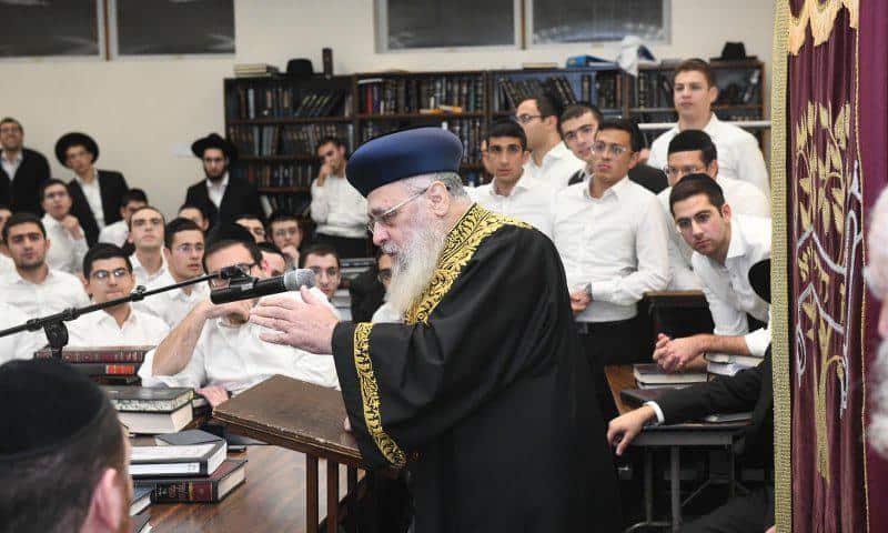 מרן מנהיג הדור שליט"א בשיעור לבחורי ישיבת 'עטרת תורה' ברוקלין בראשות חכם יוסף הררי רפול שליט"א חבר מועצת גדולי התורה דאמריקה.