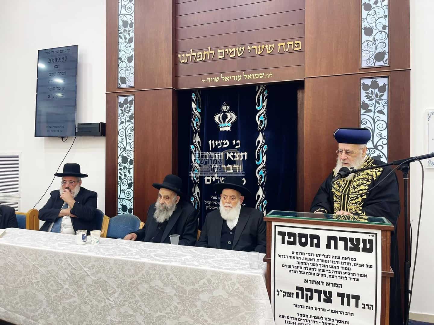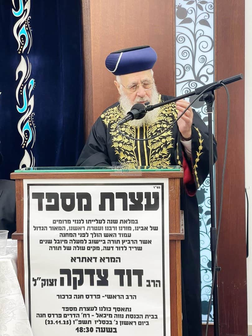משם המשיך מרן שליט״א לעיר פרדס חנה, שם נערך מעמד מרומם במלאות שנה לפטירת רבה של העיר, הגאון רבי דוד צדקה זצוק״ל. את האירוע כיבדו בנוכחותם רבנים, דיינים, ואישי ציבור ובראשם אחיו של המנוח, מרן ראש הישיבה חכם משה צדקה שליט״א. מנהיג הדור נשא דברי הספד על פועלו הרב של הרב זצ״ל להעמדת ההלכה על תילה בעיר.