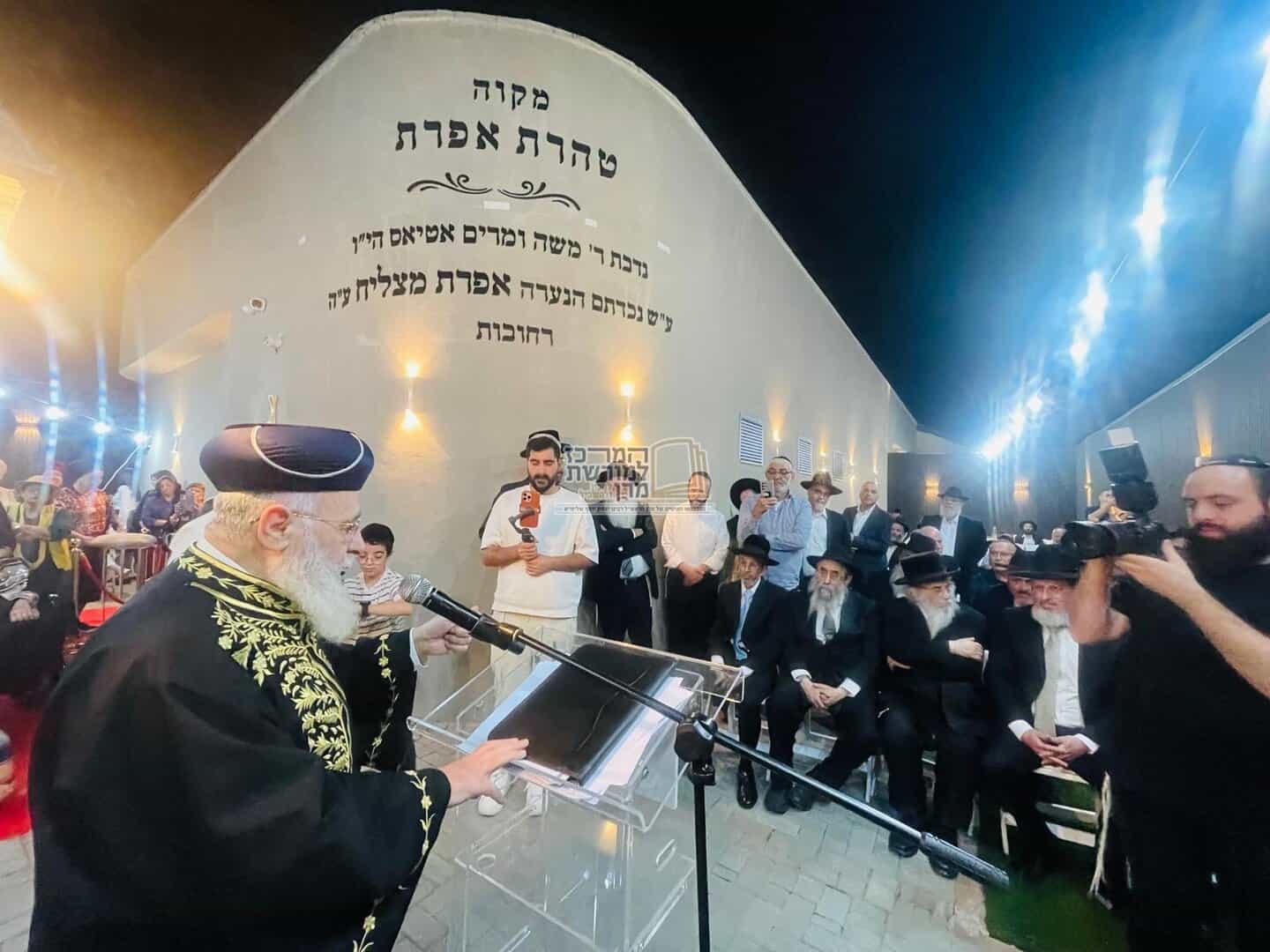 תחילה הגיע מרן שליט״א לעיר רחובות, שם התקיים טקס חנוכת מקווה טהרה חדש שנבנה בהידור רב. תושבים, רבנים ועסקני ציבור הגיעו להשתתף במעמד המורים, לשמוע דברי חיזוק מפי מרן שנשא דברים בזכות מצוות הטהרה.