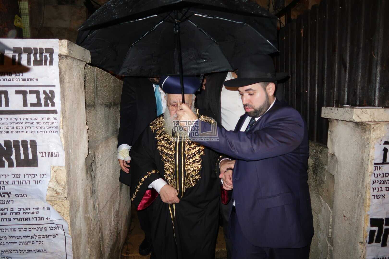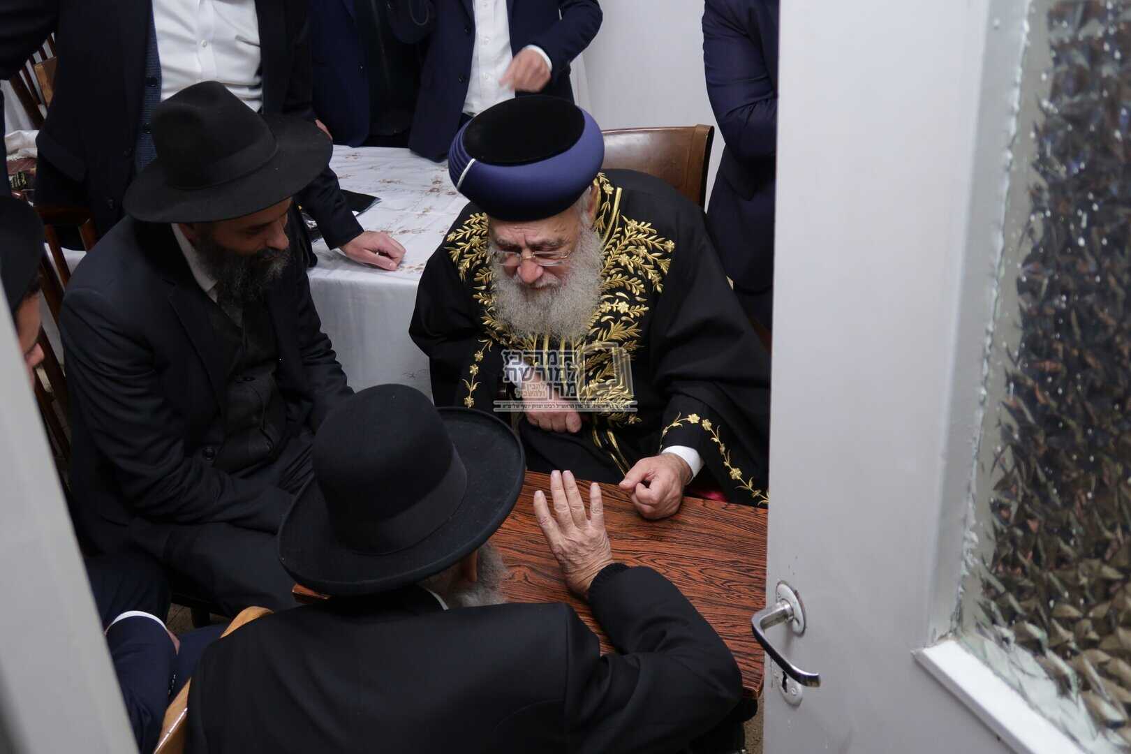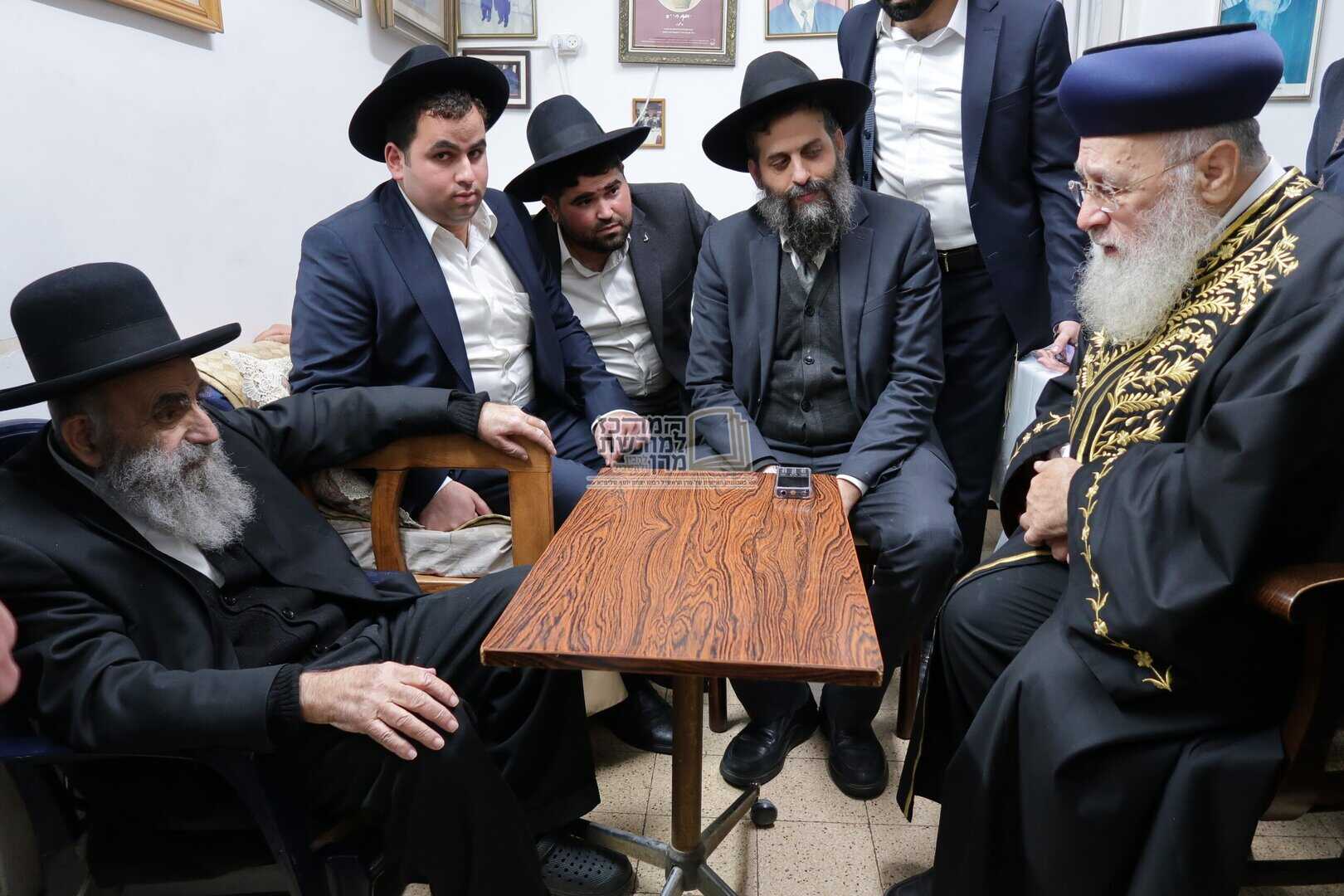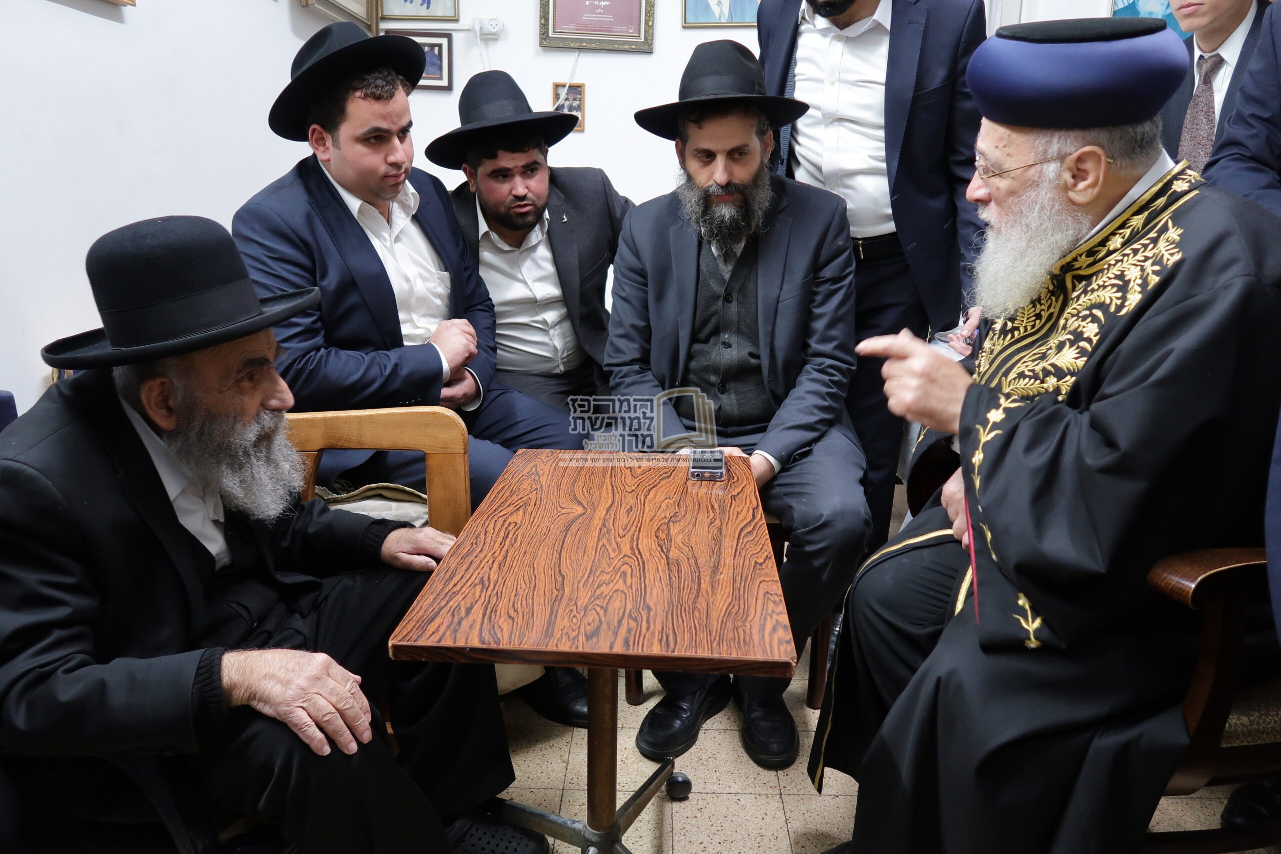 מרן פוסק הדור הראש"ל הגאון רבי יצחק יוסף שליט"א עלה לנחם את מרן רה"י הגאון רבי משה צדקה שליט"א על פטירת אחיו הרב שאול צדקה זצ"ל. צילום: ש.פ.ה