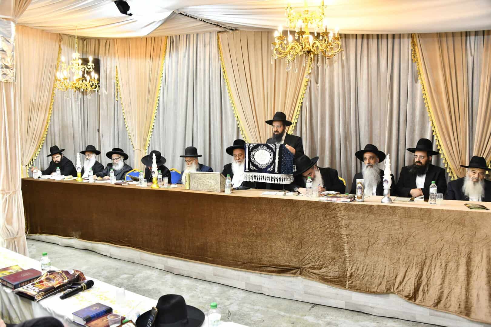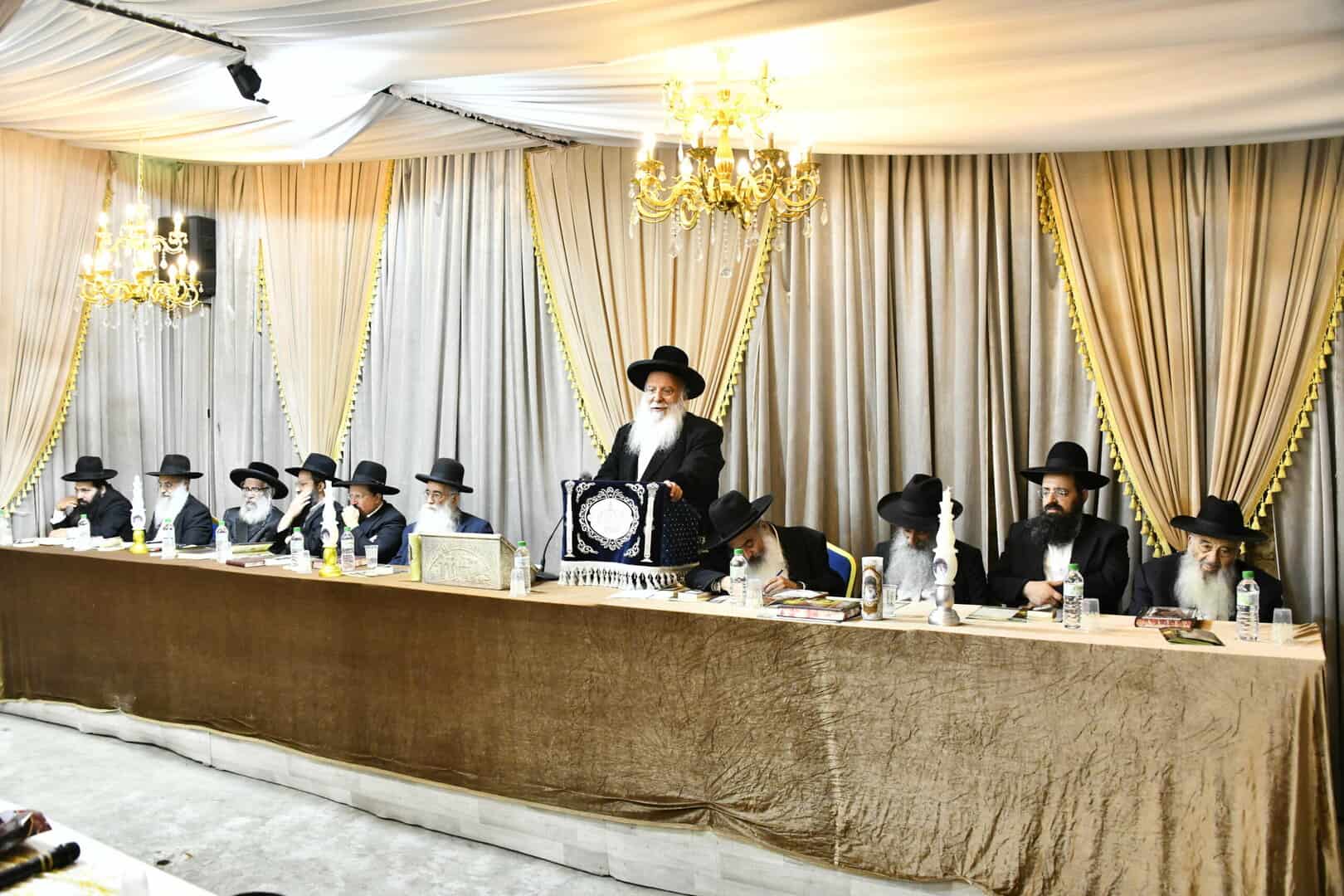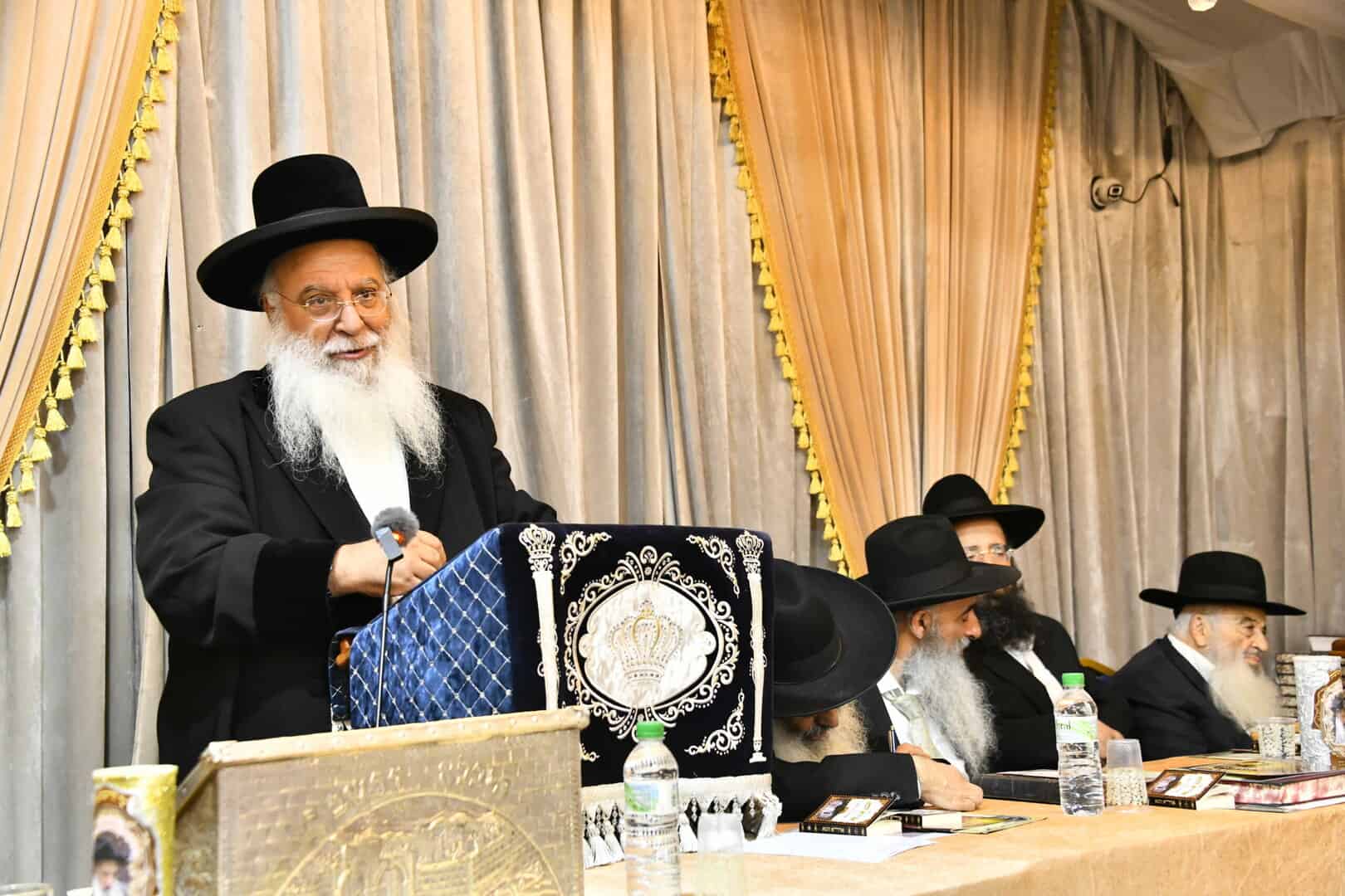 במלאות שנה להסתלקותו של הגה"צ רבי שלום שמואלי זצוק"ל נערך עצרת חיזוק בבית מדרשו בהיכל ישיבת "נהר שלום" בירושלים בהשתתפות גדו"י שליט"א. צילום: שוקי לרר