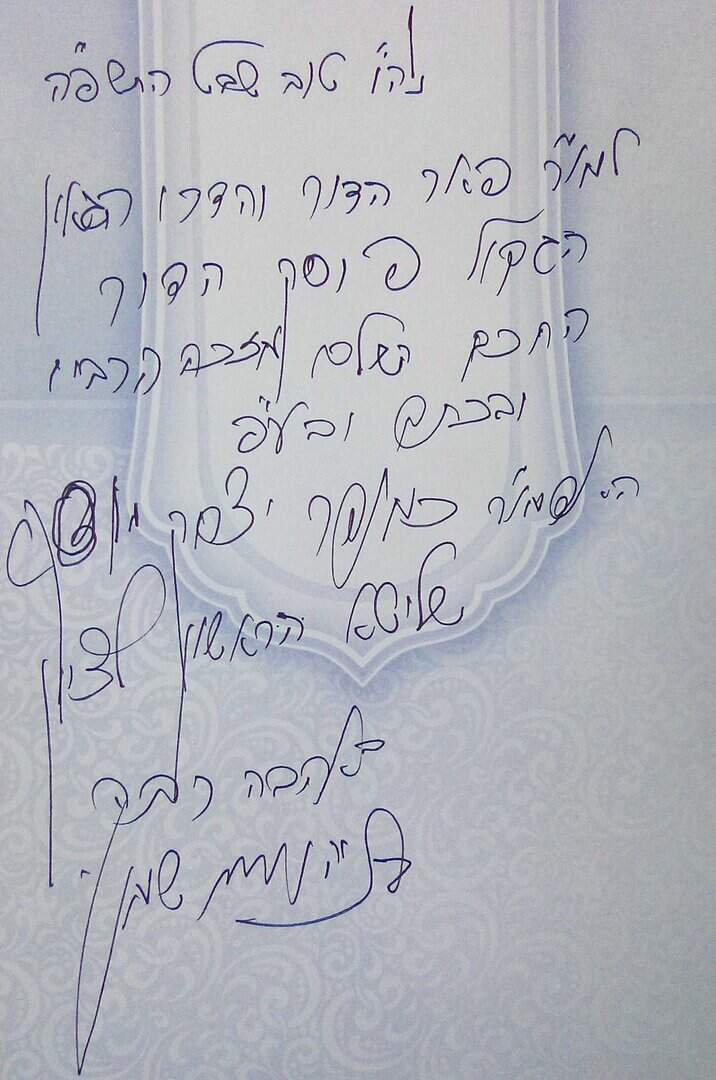 המקובל הצדיק הגאון רבי בניהו שמואלי שליט"א ראש ישיבות המקובלים "נהר שלום" שלח את ספרו "מושיע ומגן" העוסק בענייני הקטורת והקורבנות הרואה אור בימים אלו למרן הראשון לציון הגאון הגדול רבי יצחק יוסף שליט"א,