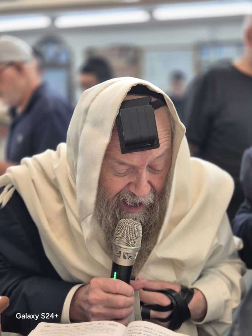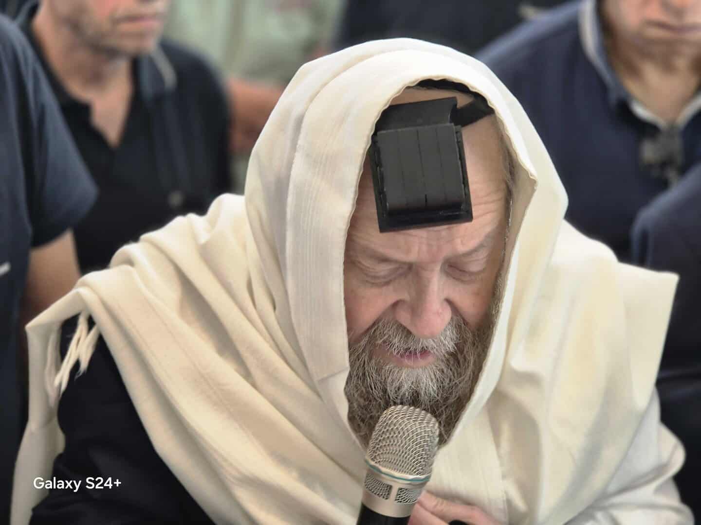 זקן המקובלים הגה"צ רבי דוד בצרי שליט"א בתיקון לרפואת החולים בביהכנ"ס "בית יוסף" בגבעתיים בראשות רב בית הכנסת בנו הרב שלמה בצרי שליט"א. צילום: ש.פ.ה