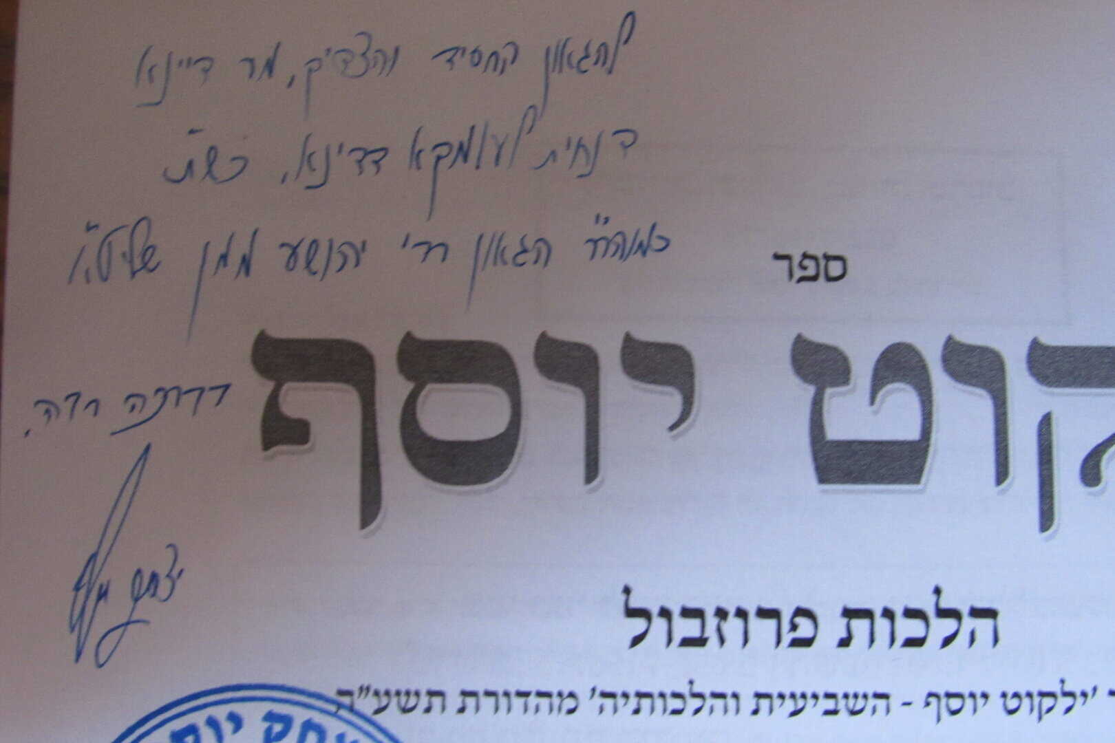 בתיעוד שמתפרסם לראשונה הקדשה נדירה שכתב מרן מנהיג הדור שליט"א לגאון הגדול רבי יהושע מאמן זצוק"ל על ספרו 'ילקוט יוסף' הלכות פרוזבול, מהדורת קובץ 'בית יוסף' שיו"ל ע"י 'המרכז למורשת מרן' ובו כתב מרן מנהיג הדור שליט"א, וז"ל לגאון החסיד והצדיק, מר דיינא דנחית לעומקא דדינא, כש"ת כמוהר"ר הגאון רבי יהושע מאמן (שליט"א).