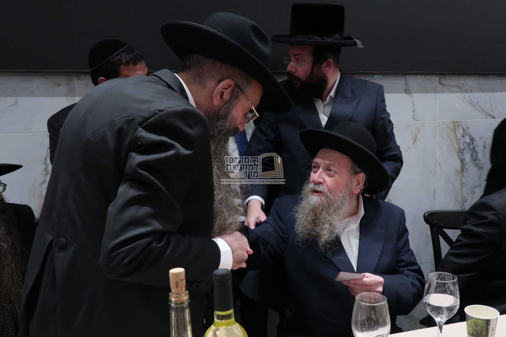 בשמחה שנערכה באולמי 'הטרקלין' בעיר בני ברק, הגיעו להשתתף ולאחל מזל-טוב מרנן ורבנן שליט"א: הגה"צ חכם ניסים בן שמעון שליט"א, כ"ק מרן האדמו"ר ממחנובקא שליט"א, כ"ק מרן האדמו"ר מדעעש שליט"א,ועוד. צפו בגלריה של הצלם ש.פ.ה