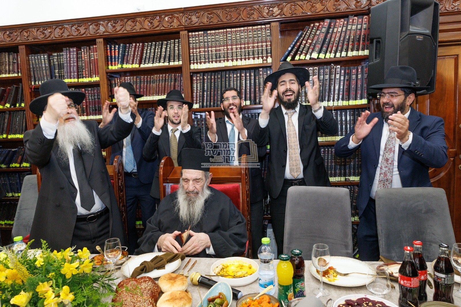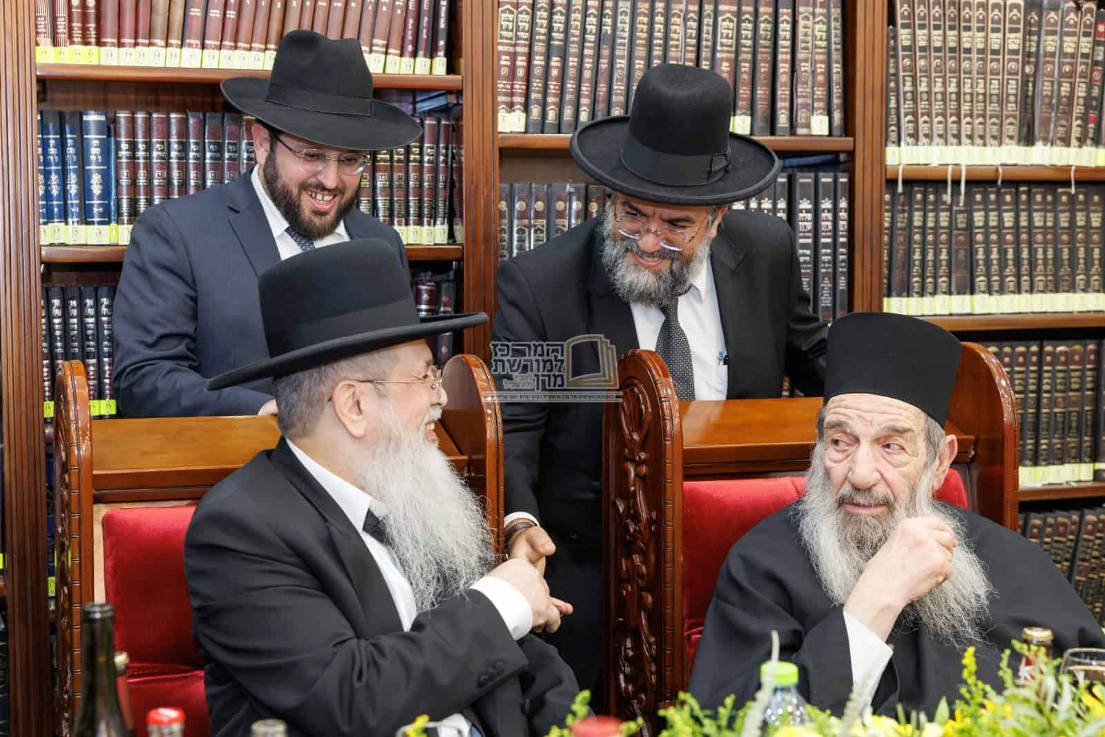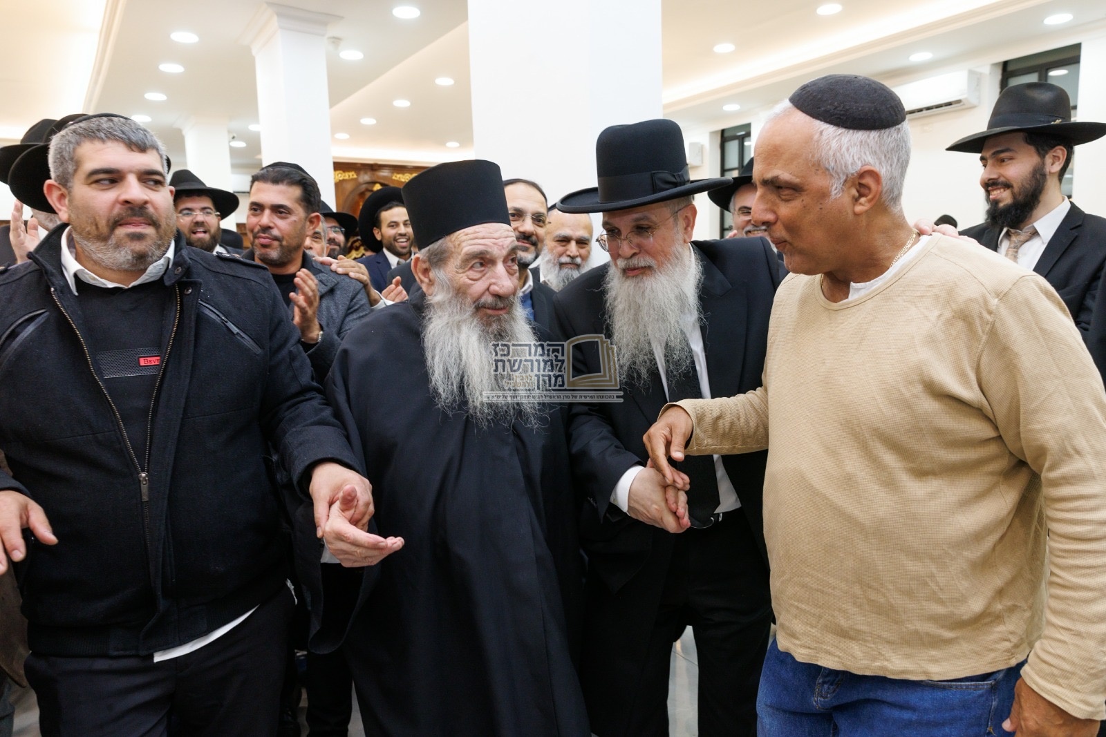 הדינר השנתי למוסדות הליכות משה שבראשות הגאון הגדול רבי שבתי לוי בהשתתפות נשיא המוסדות הגה"צ חכם ניסים בן שמעון, יו"ר המועצה הדתית יחיאל לוי, סגר"ע שלומי אלחרר ועוזרו ראובן שרהבני, ומתאם הסיעה ישראל בן ששון (צילום: אליעזר פיינשטיין)