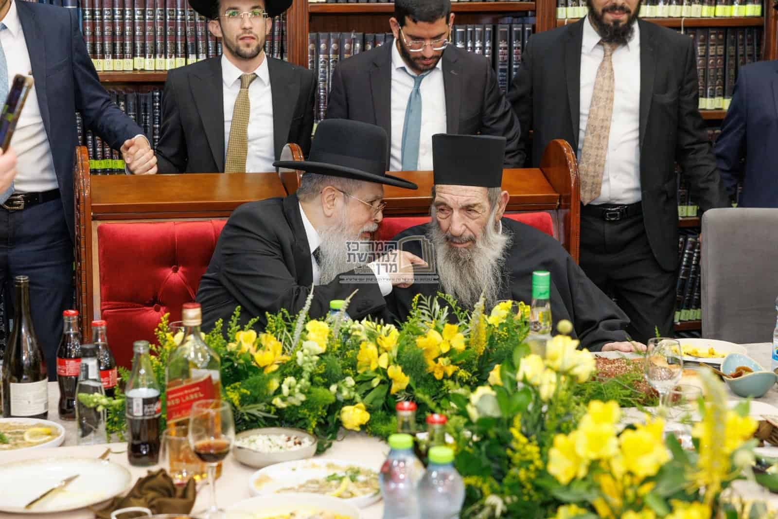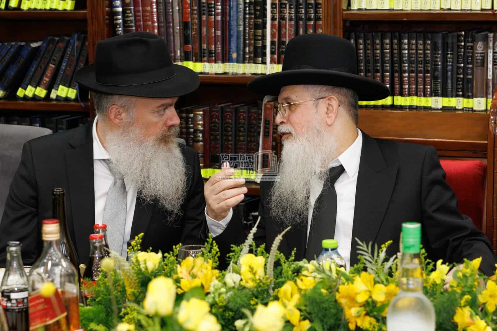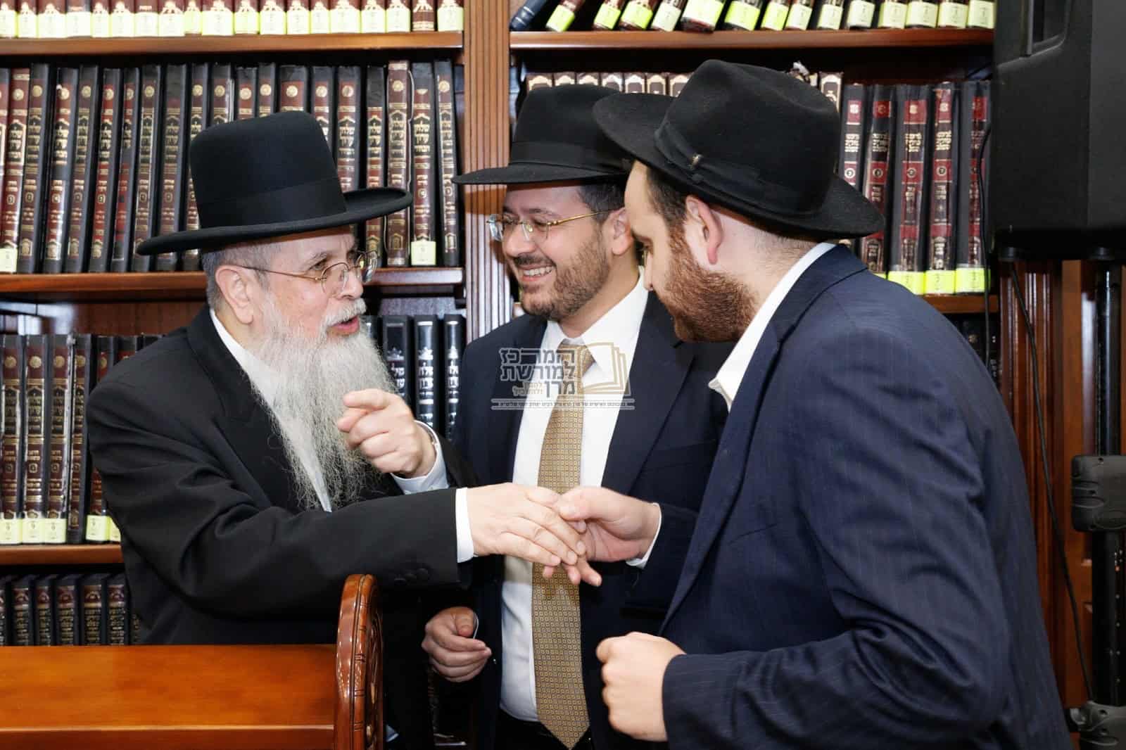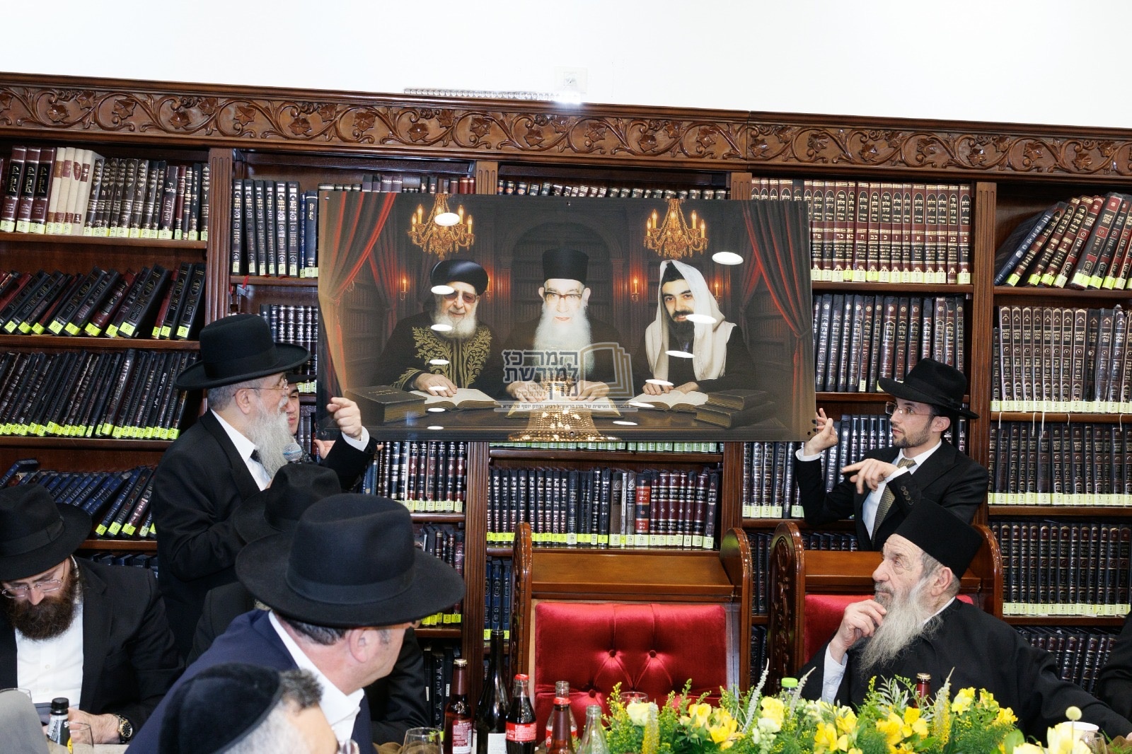 הדינר השנתי למוסדות הליכות משה שבראשות הגאון הגדול רבי שבתי לוי בהשתתפות נשיא המוסדות הגה"צ חכם ניסים בן שמעון, יו"ר המועצה הדתית יחיאל לוי, סגר"ע שלומי אלחרר ועוזרו ראובן שרהבני, ומתאם הסיעה ישראל בן ששון (צילום: אליעזר פיינשטיין)