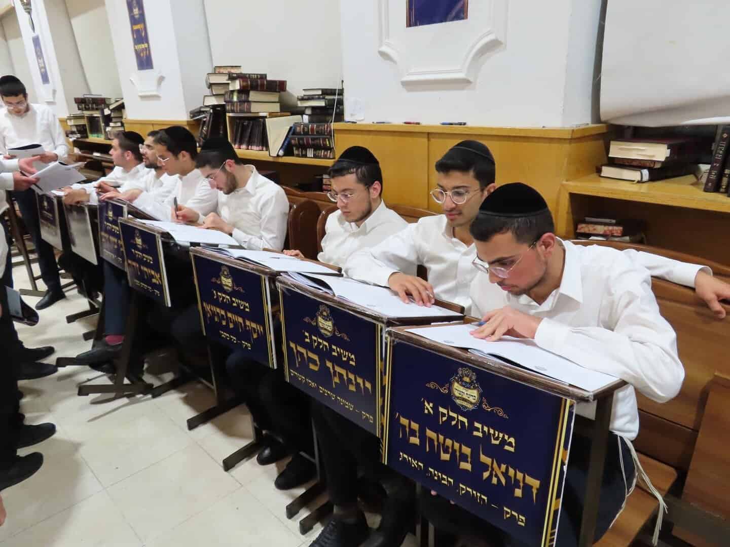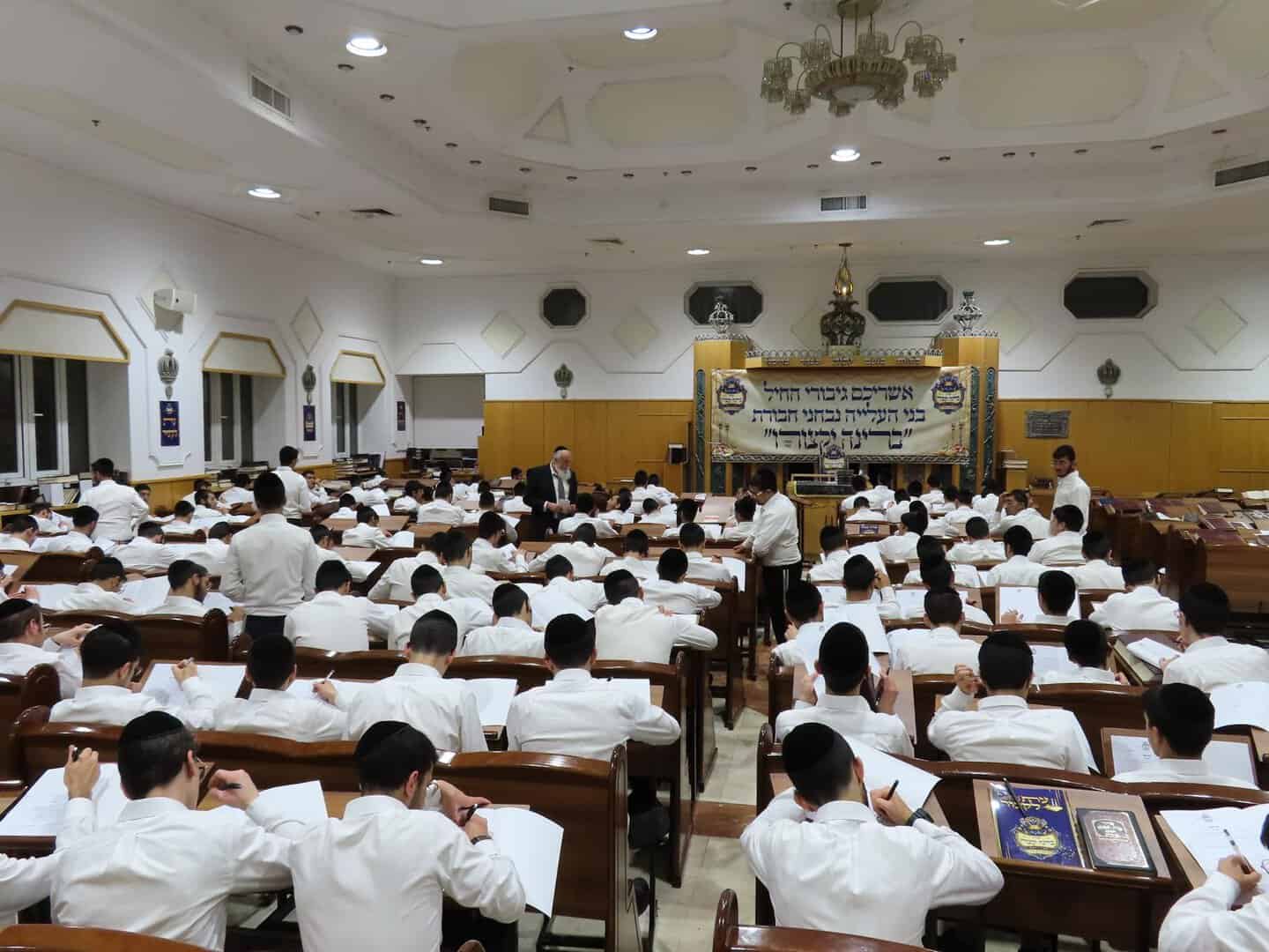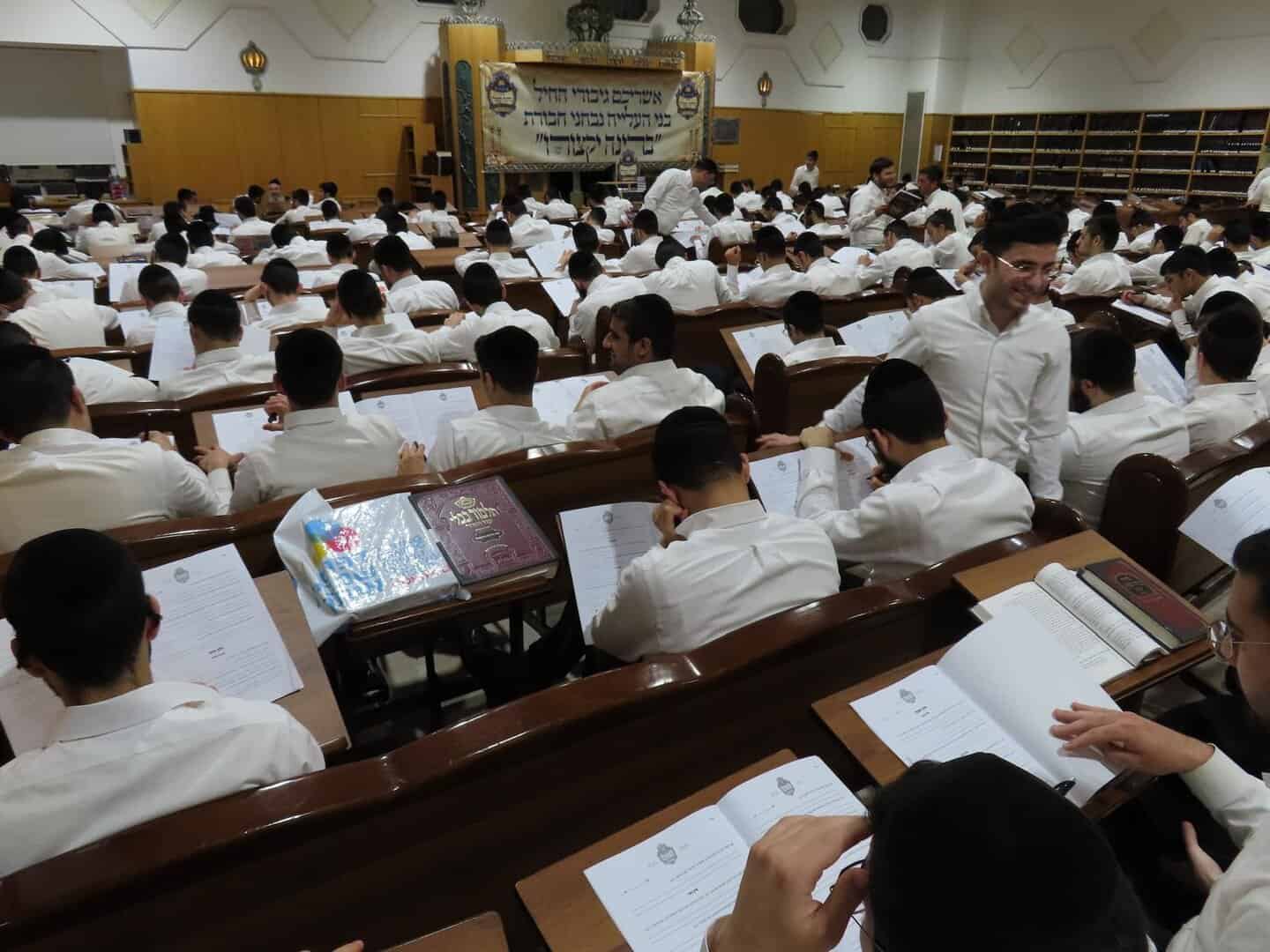 במהלך המבחן בחורי הקיבוץ שימשו כ'משיבים' וענו על שאלות הבחורים, במהלך המבחן נכנס נשיא הישיבה הגה"צ רבי יהודה כהן שליט"א והתפעל מהידיעה המקיפה של הבחורים במסכת, ובשיחה שמסר לפני הבחורים חיזקם לפני צאתם לימי בין הזמנים בענייני הזמן ובעיקר בנושא הגיוס ש"לא לשמוע לכל הניסיונות של הצבא ולעמוד כחומה בצורה מולם". מרן רה"י דיבר על היציאה לבין הזמנים ועל הניסיונות שיש לבחורים בכל מקום שיוצאים, ובפרט חיזק חבר המועצת על 'שמירת העיניים' שהיא השורש לכל התורה כולה.