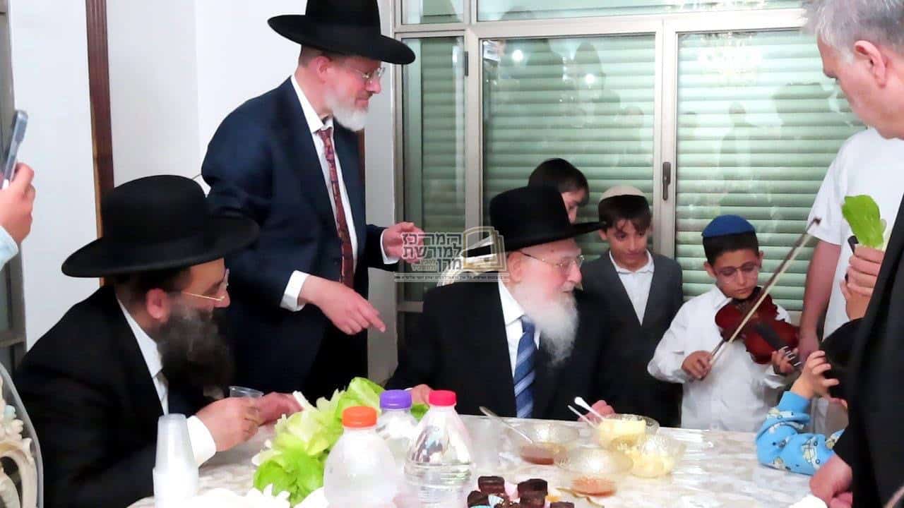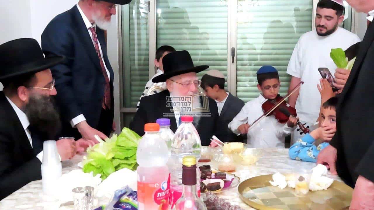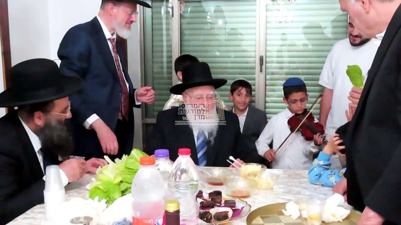 אחד הילדים הביא כינור וניגן בפני הרב פינטו שירי חג הפסח וזכה לברכה.