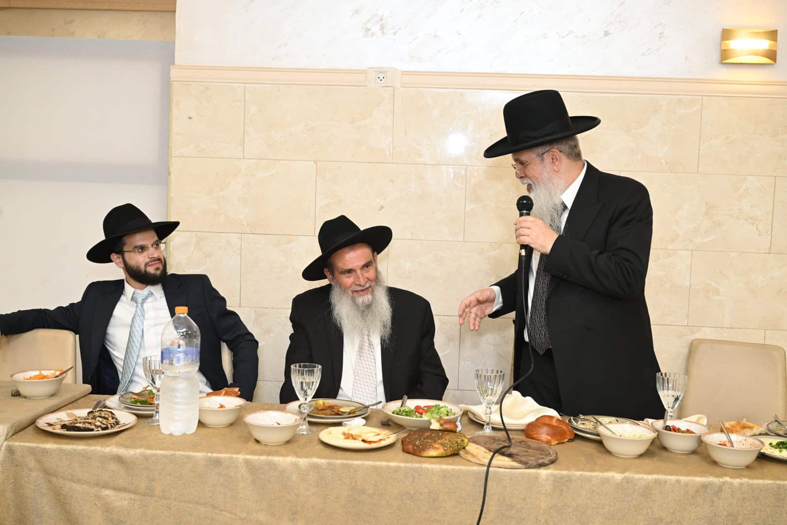 בסנדקאות כובד הסבא רבא הגה"צ ניסים בן שמעון שליט"א, לאחר הברית עברו הקהל להתברך בברכות לרוב והסבו לסעודת מצוה בו נשאו הסבים הרבנים הגאונים שליט"א דברי תורה בהלכה ובאגדה.