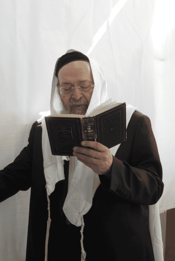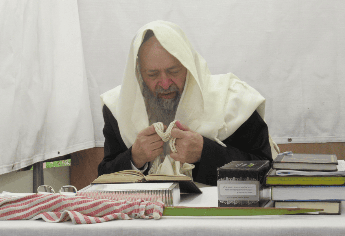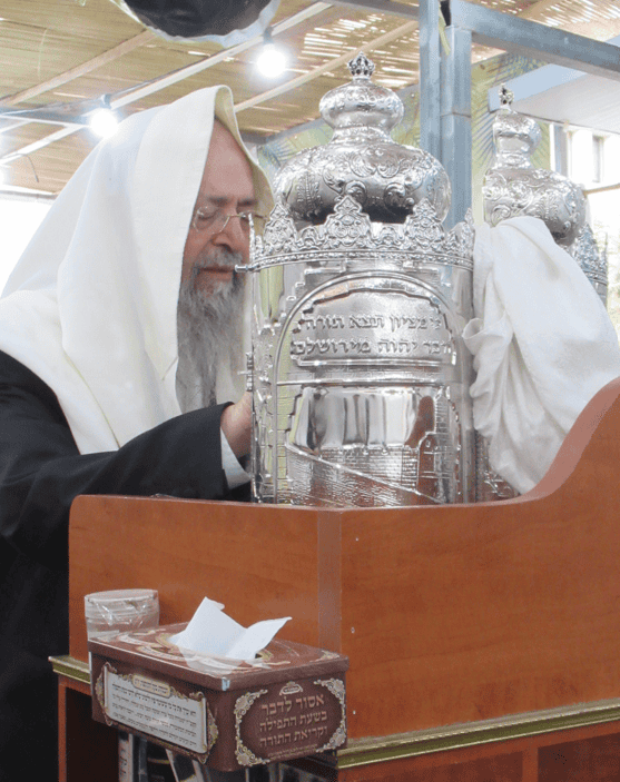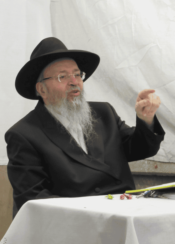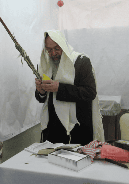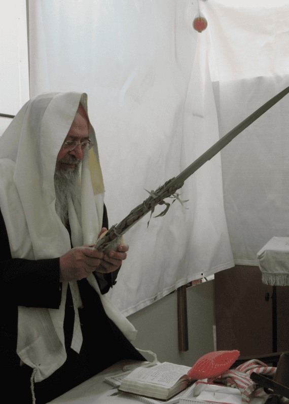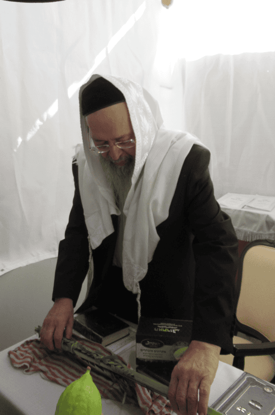 ראש ישיבת כף החיים הגאון הגדול רבי יעקב חיים סופר שליט״א בעבודת הנענעים ובמסירת שיעור בסוכתו.