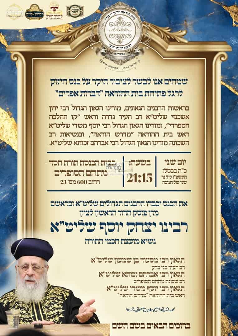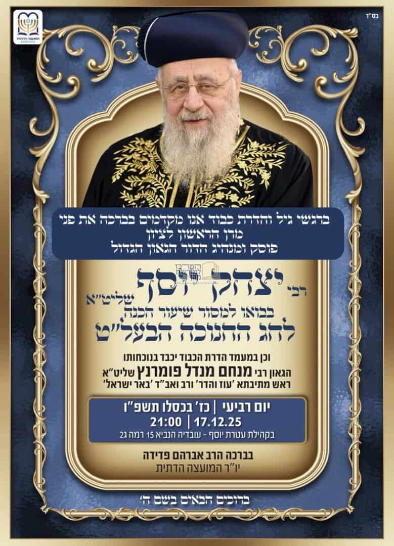 ראשי / חדשות עולם התורה / מוסיף והולך: הלו״ז המלא לימי חג החנוכה בצל מנהיג הדור מרן הראש״ל רבנו יצחק יוסף שליט״א