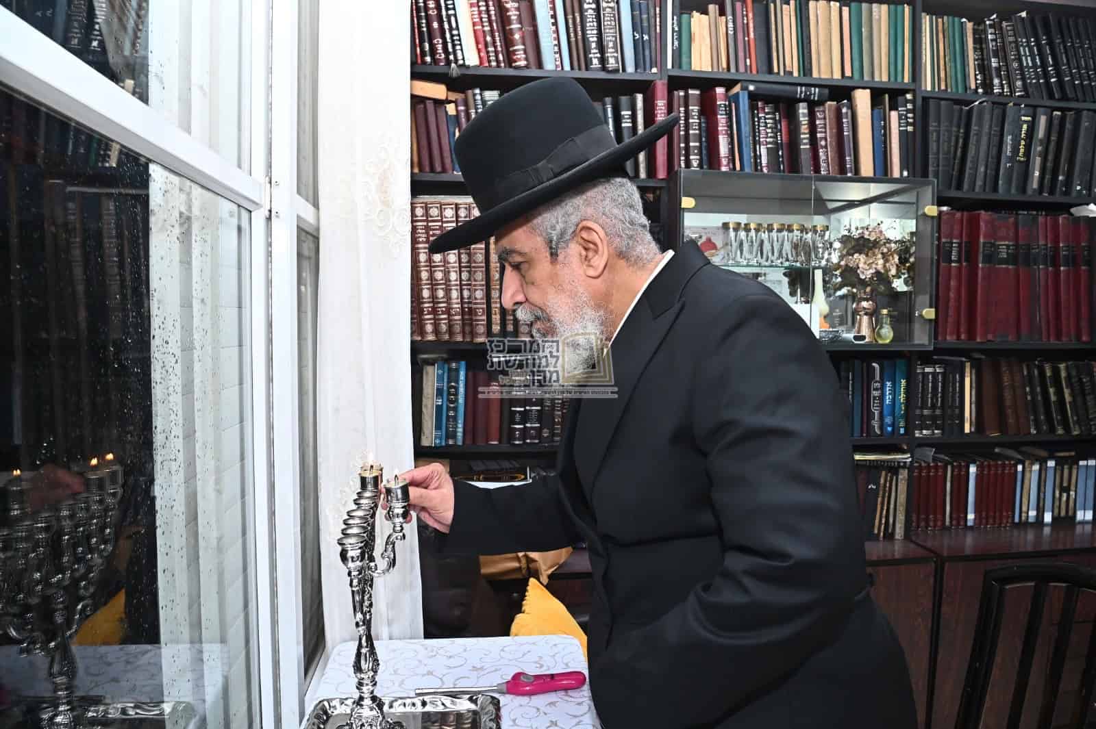 הגאון רבי יצחק רצאבי שליט"א רו"מ 'פעולת צדיק' בהדלקת נרות חנוכה. צילום: שוקי לרר