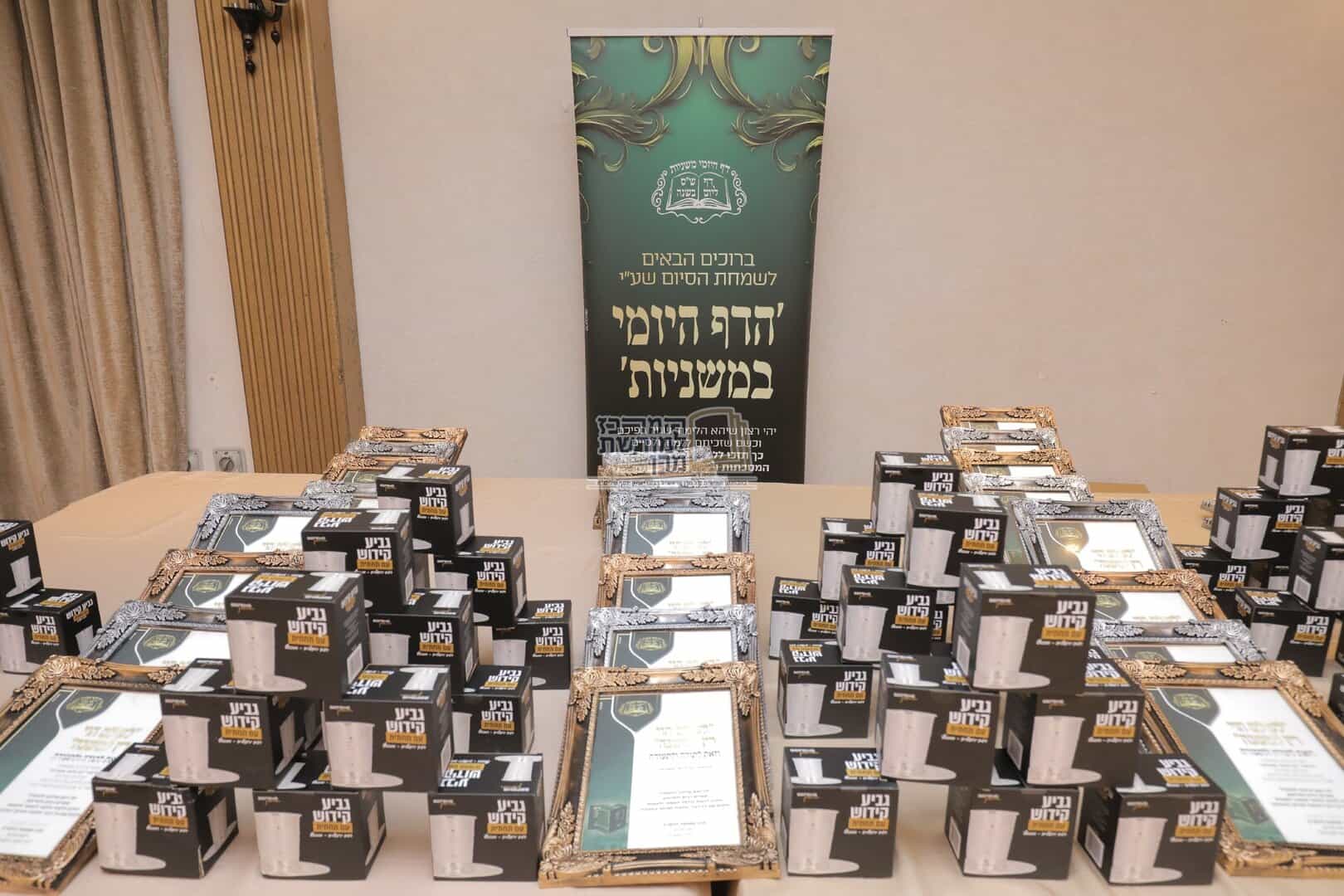 סיום ש״ס המשניות הנמסר בשיעור משניות לילדים, דף ליום 'כל יום – כל השנה'. ולאחר שנה של עמל ויגיעה זכו לסיים את כל הש"ס. השיעור מתקיים בביהכ"נ זיו יהודה בשכונת קרית הרצוג בב"ב. בהשתתפות גדו"י ובראשם זקן המקובלים הגאון רבי דוד בצרי שליט"א ראש ישיבת 'השלום' בירושלים. צילום י. בוש